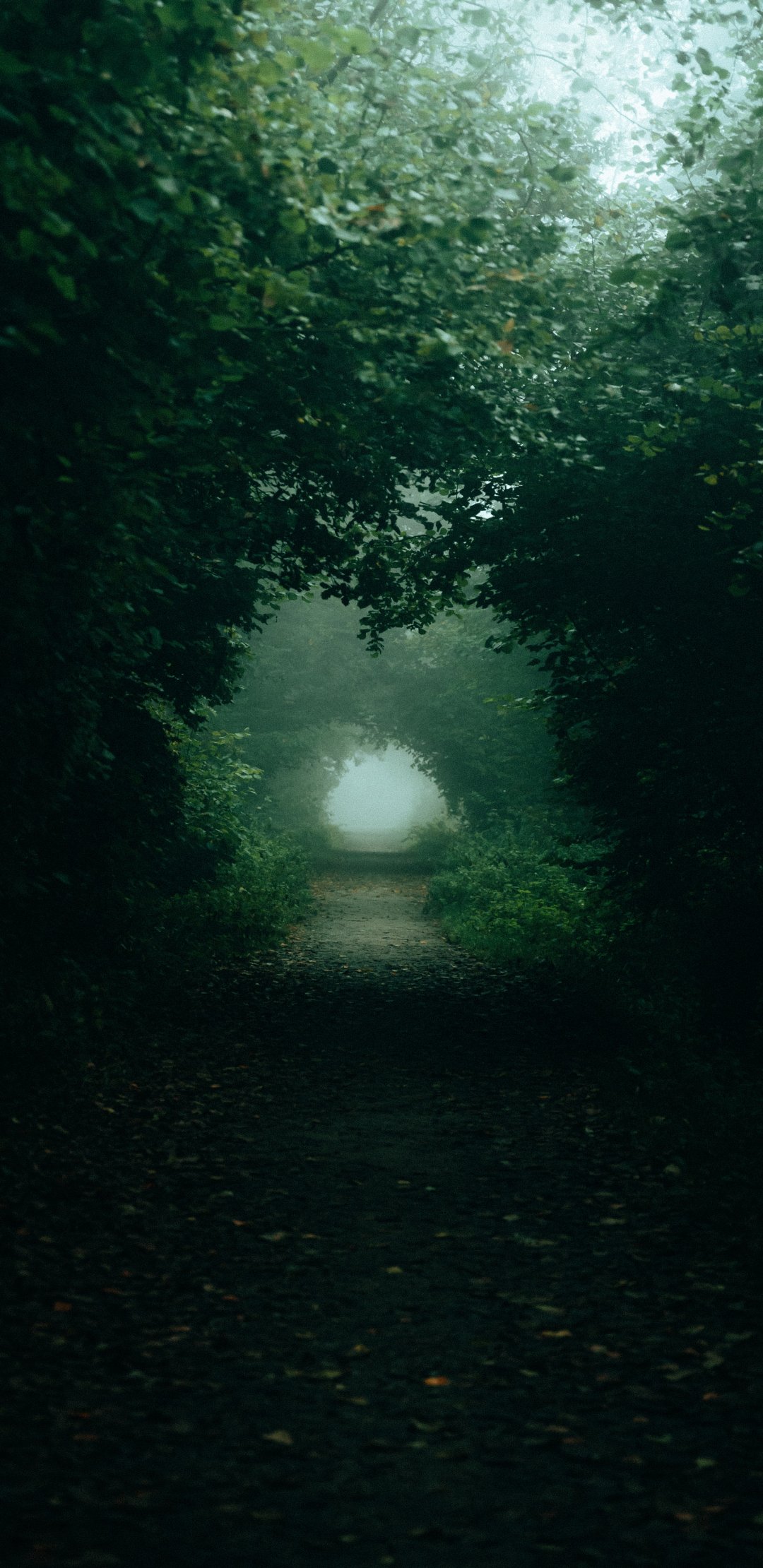 Wallpaper: forest trail, fog - 1080x2220