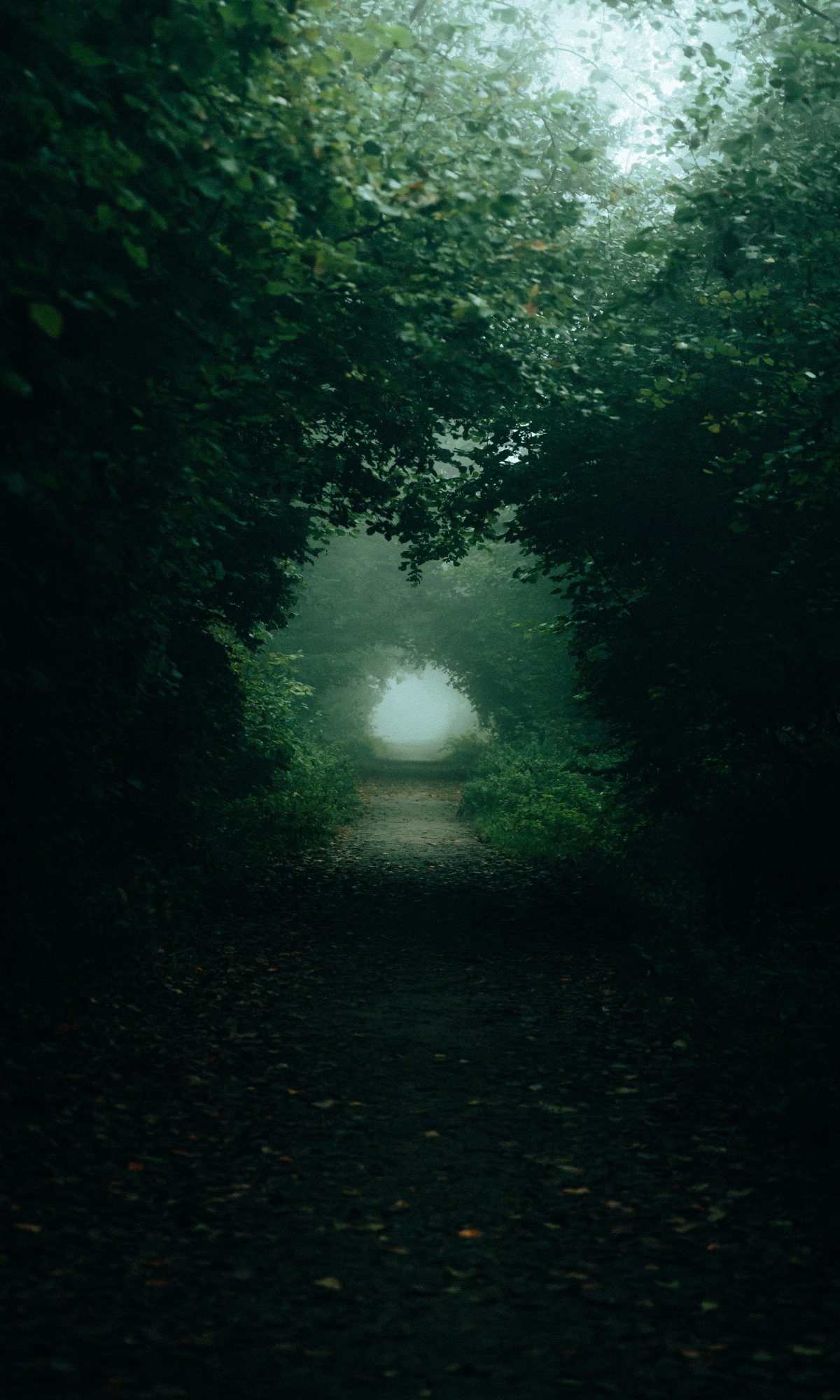 Wallpaper: forest trail, fog - 1200x2000