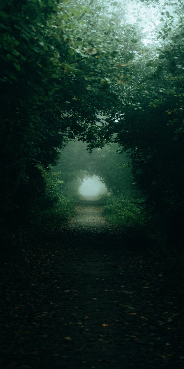Wallpaper: forest trail, fog - 720x1440