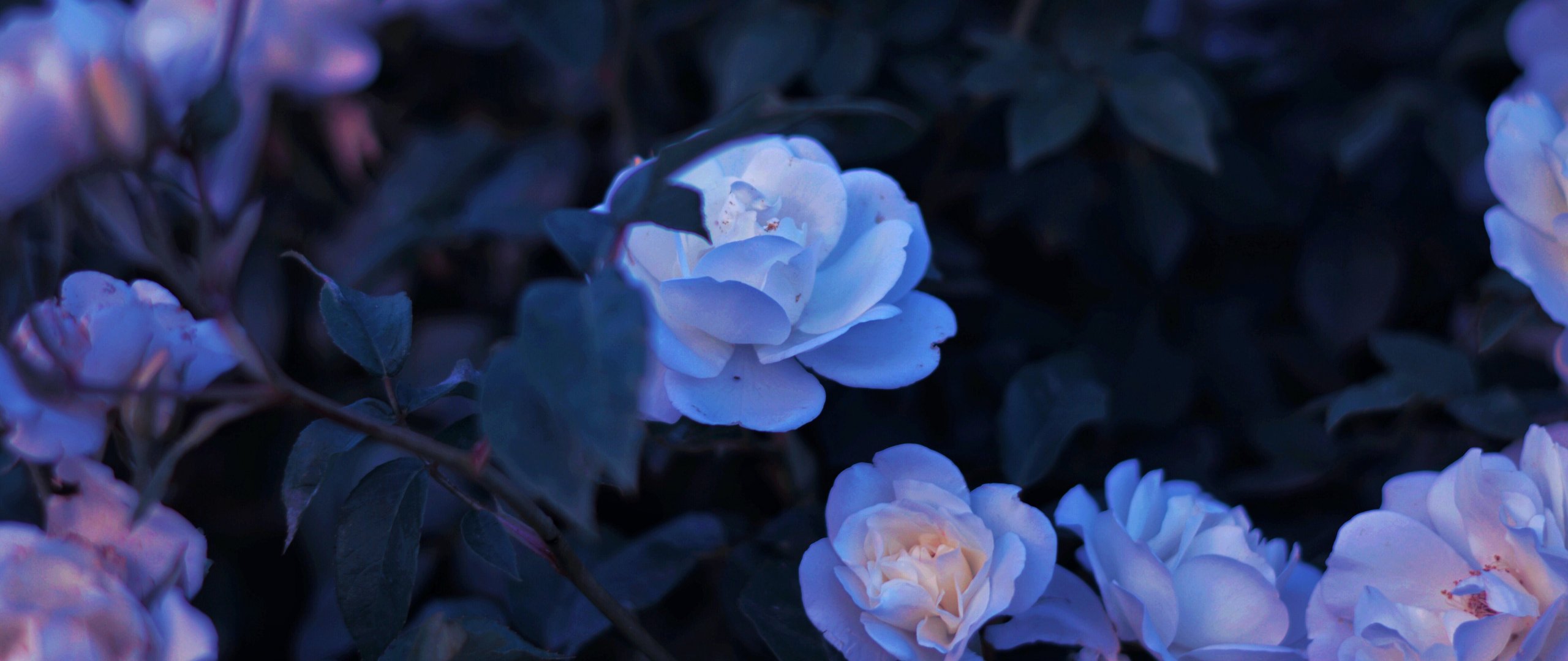 Wallpaper: blue flowers, plant - 2560x1080
