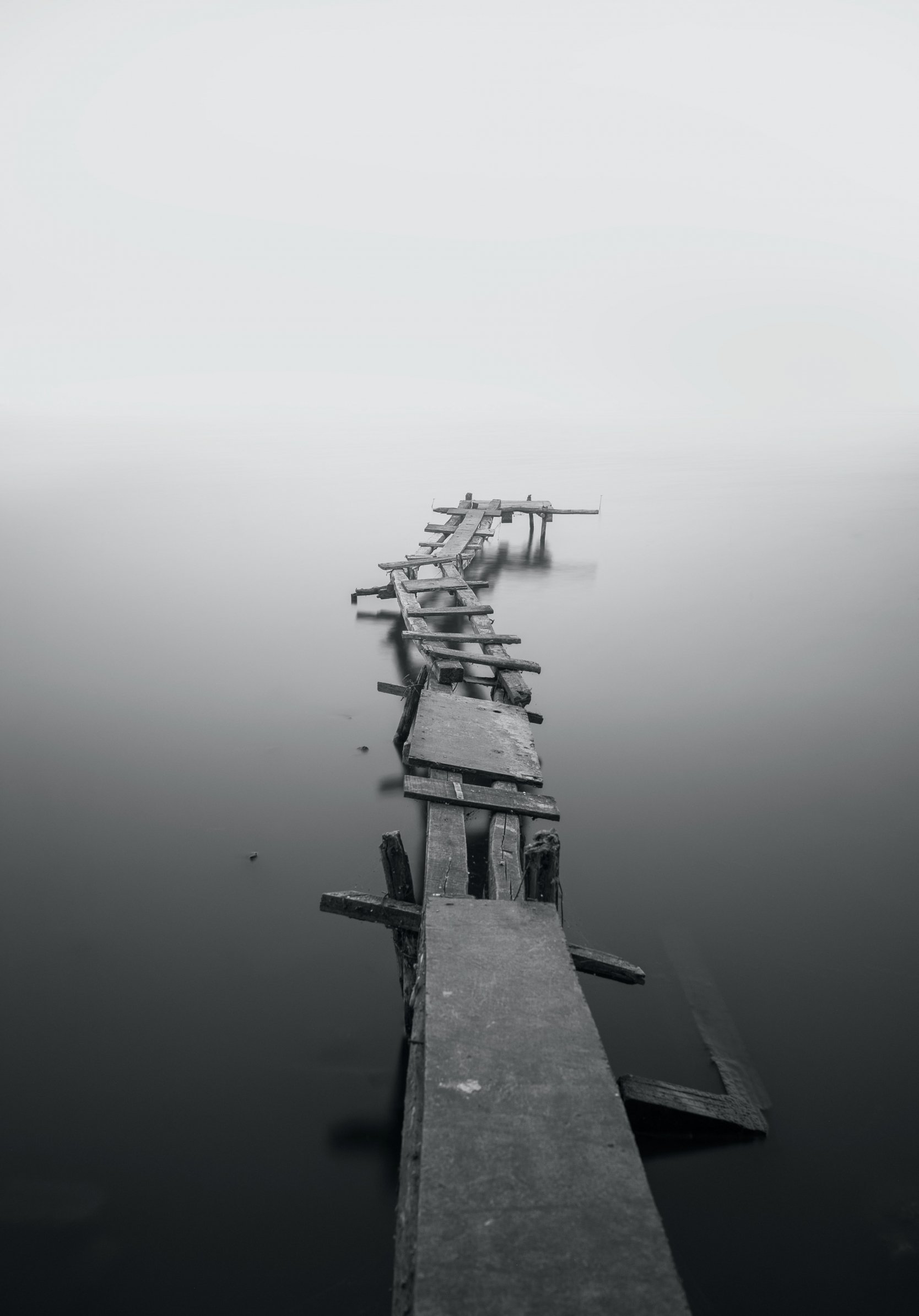 Wallpaper: lake, bridges, fog - 1668x2388