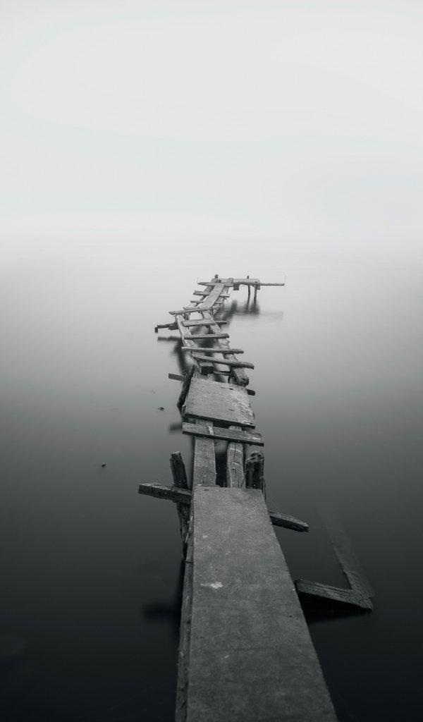 Wallpaper: lake, bridges, fog - 600x1024