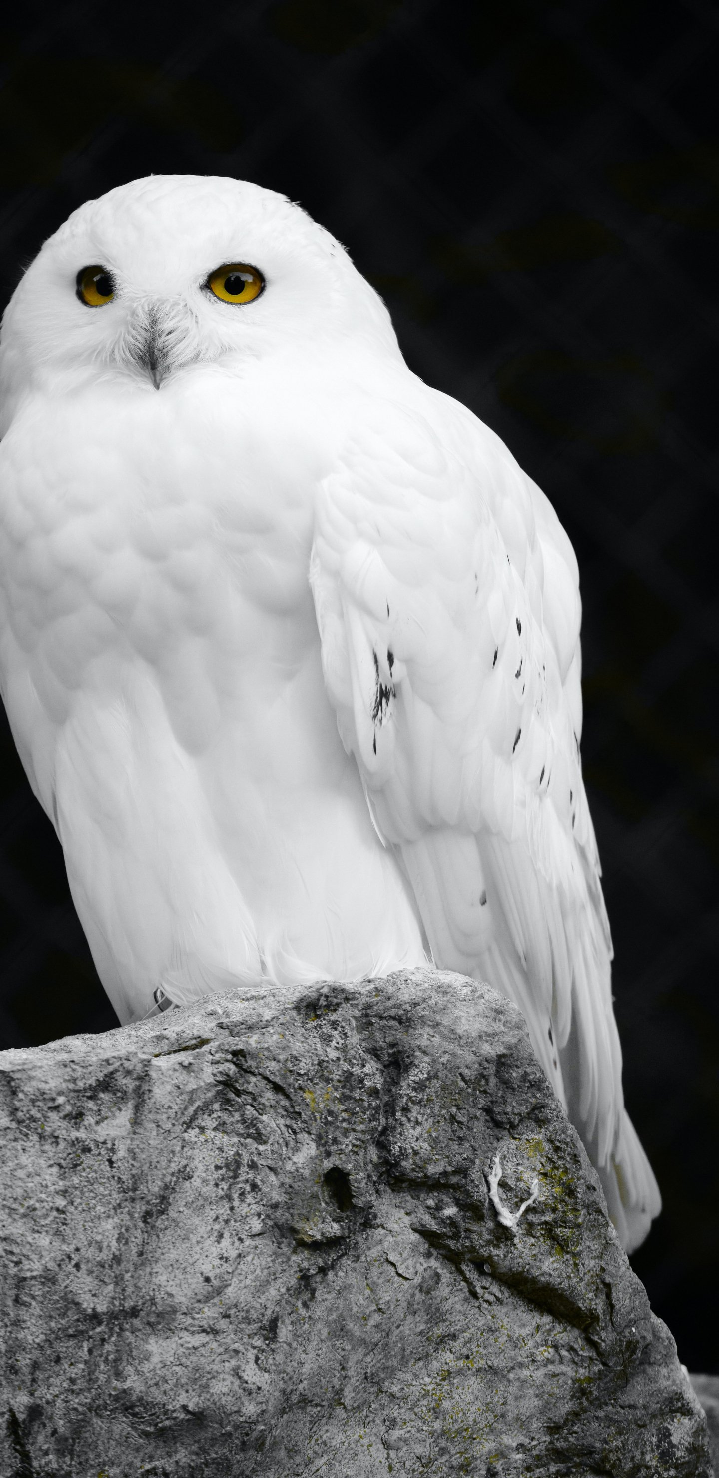 Wallpaper: white owl, black background - 1440x2960