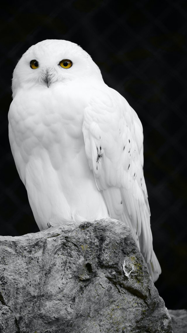 Wallpaper: white owl, black background - 640x1136