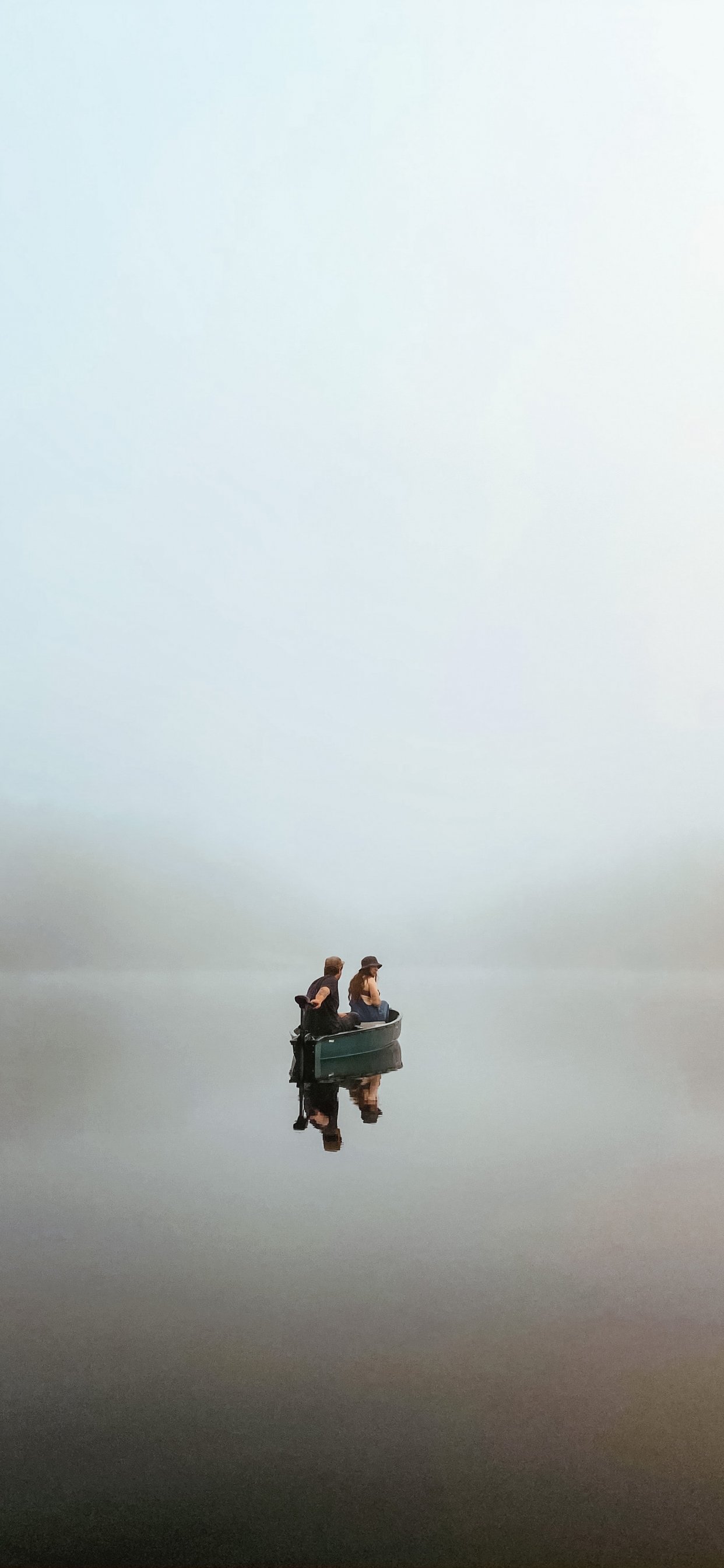 Wallpaper: boat, lake, morning, man - 1242x2688