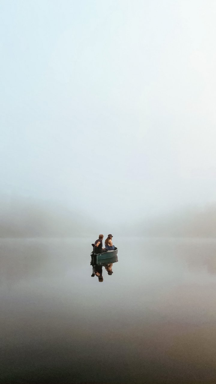 Wallpaper: boat, lake, morning, man - 720x1280