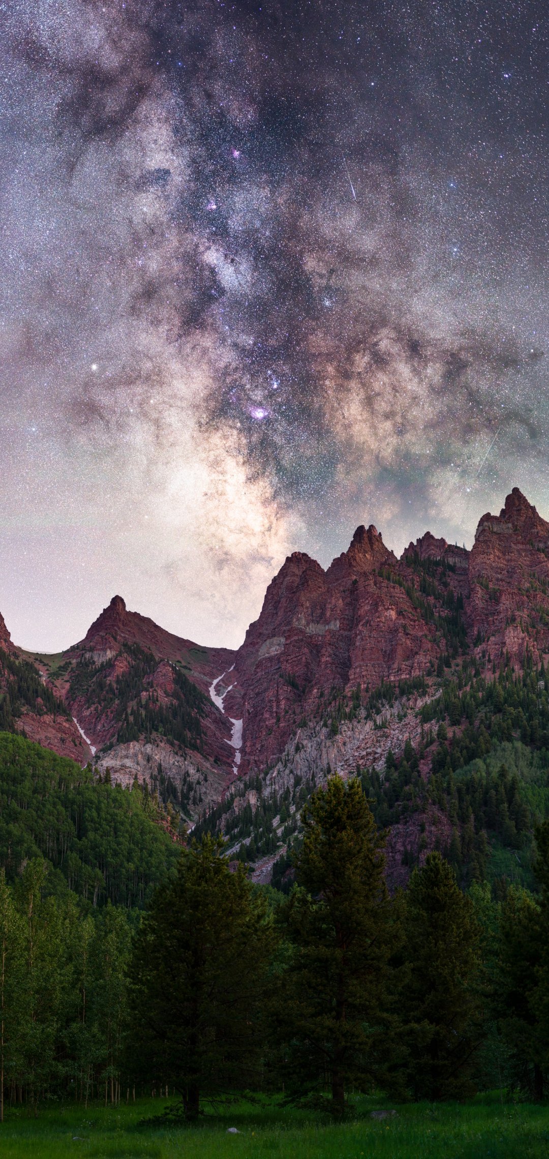 Wallpaper: milky way, mountains, forest - 1080x2280