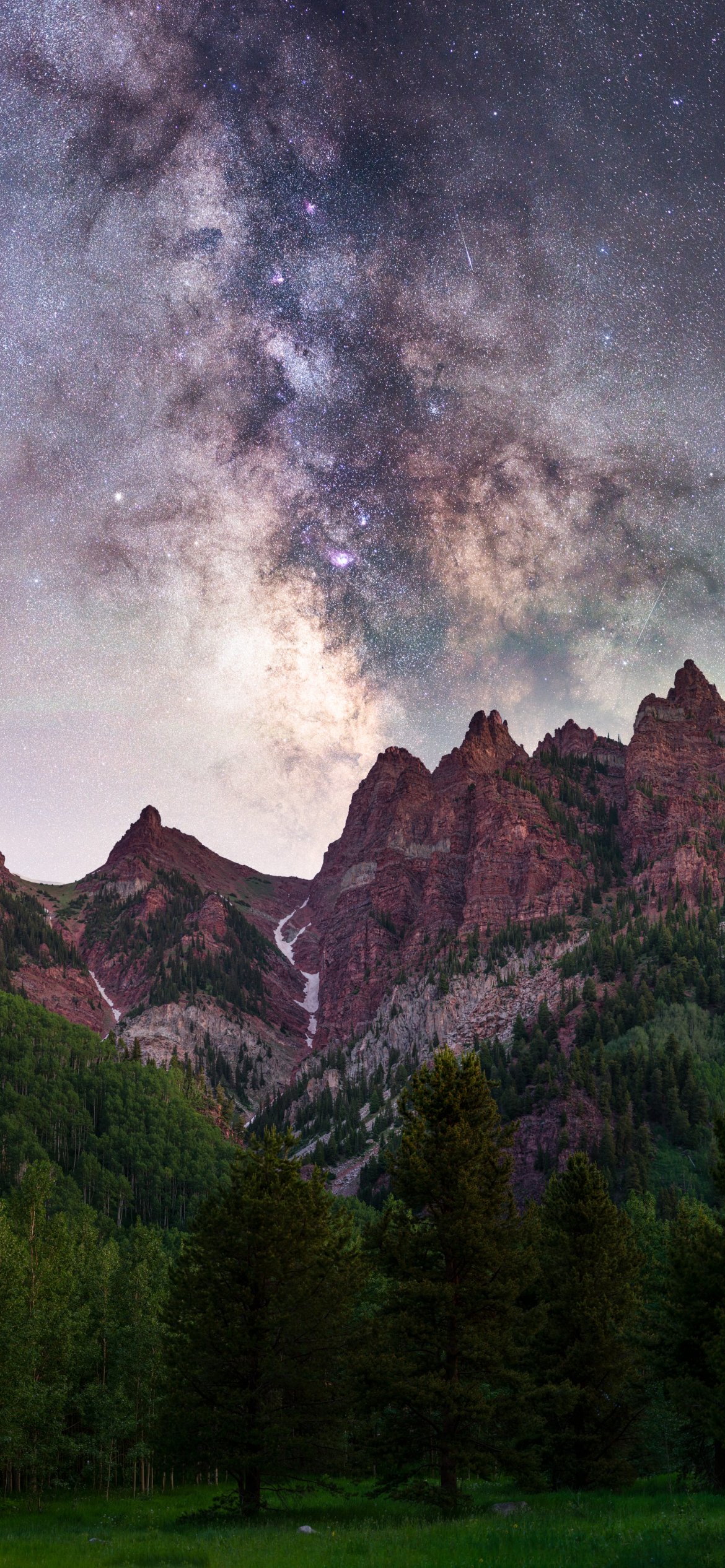 Wallpaper: milky way, mountains, forest - 1170x2532