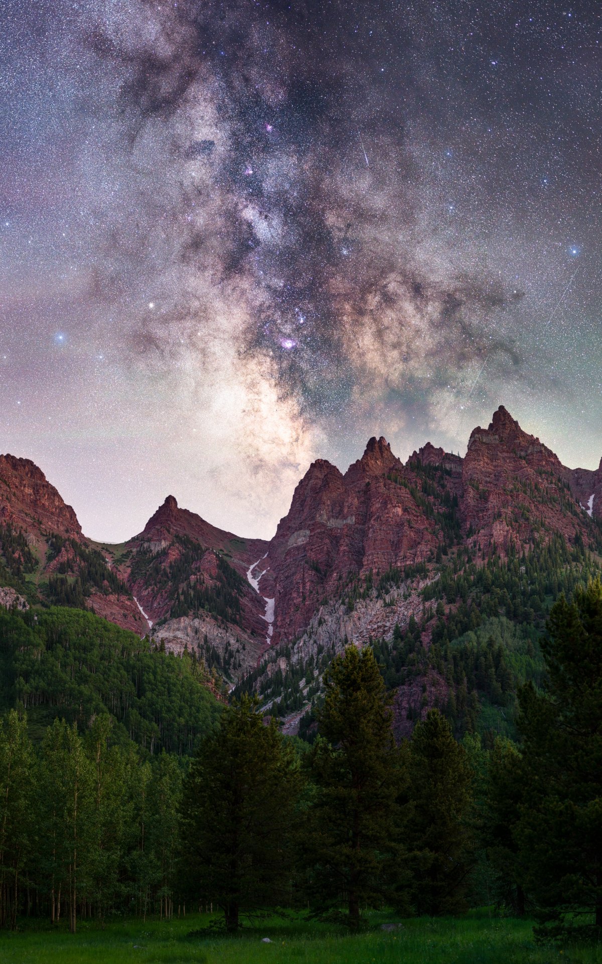 Wallpaper: milky way, mountains, forest - 1200x1920