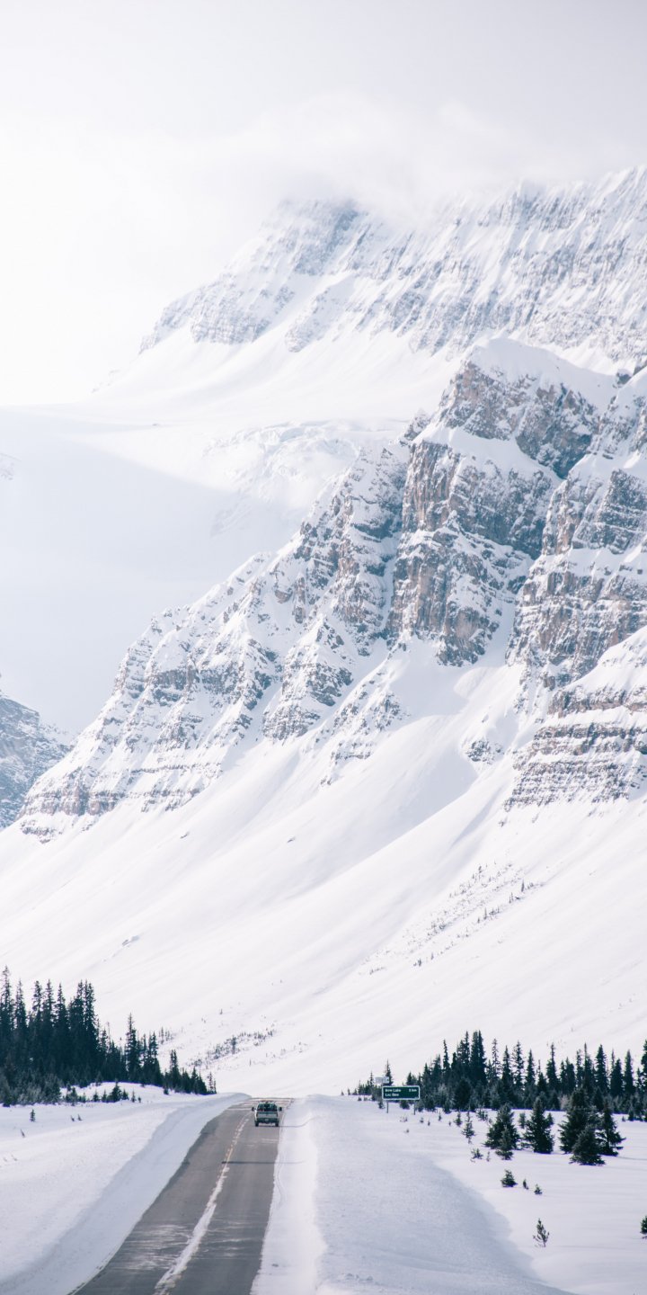 Wallpaper: mountains, road, snow - 720x1440