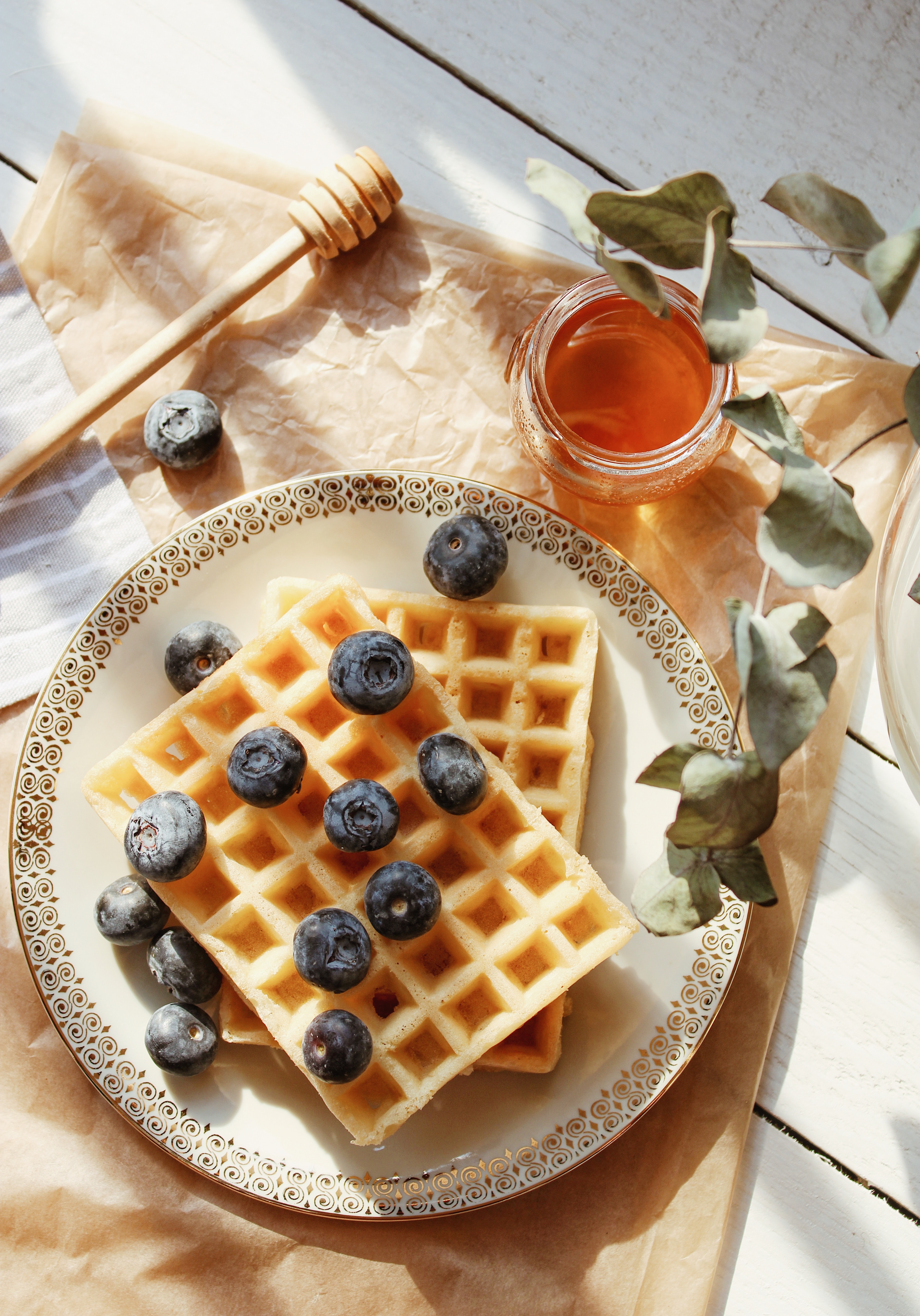 Wallpaper: waffles, berries, honey - 4000x5723