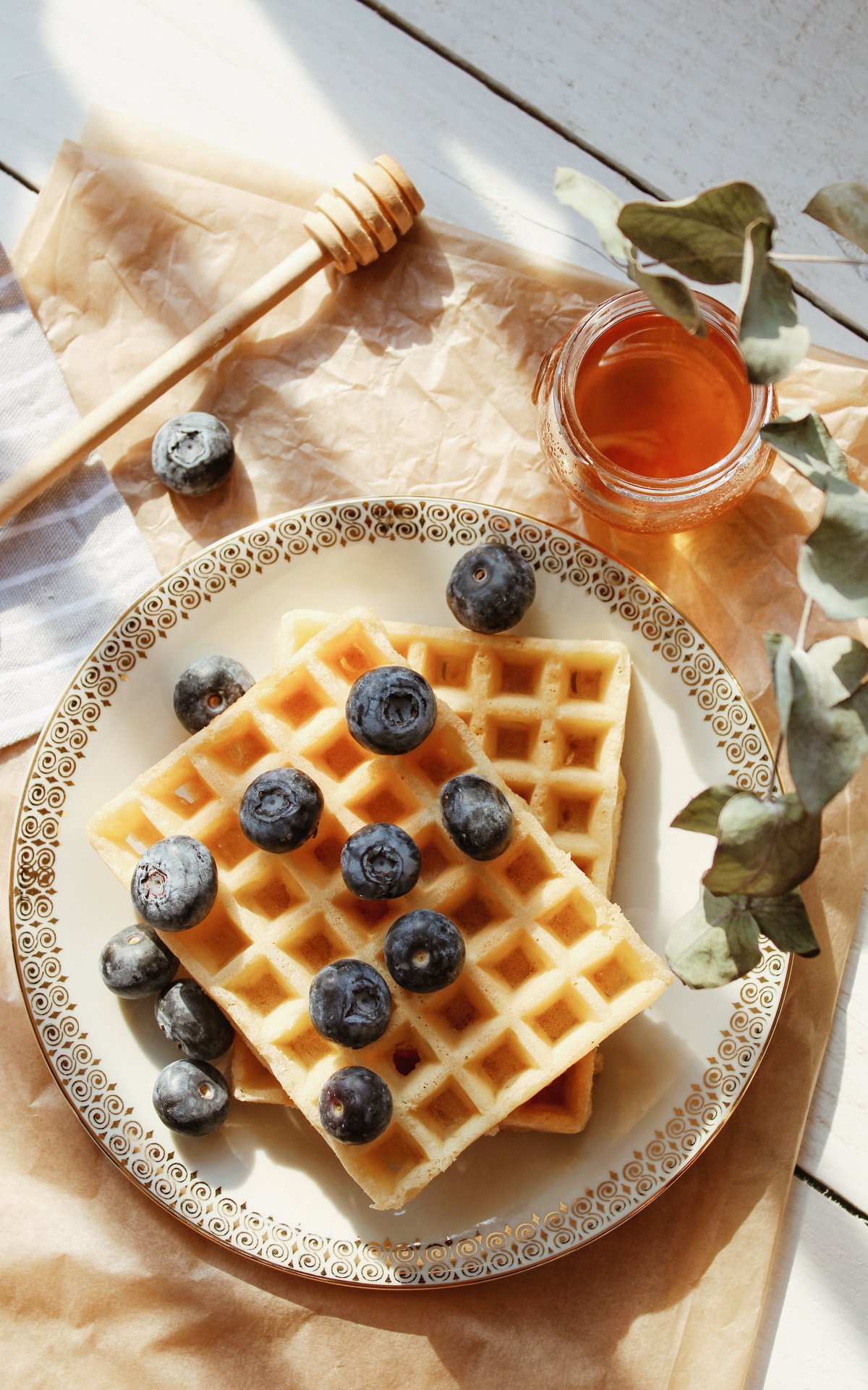 Wallpaper: waffles, berries, honey - 1200x1920