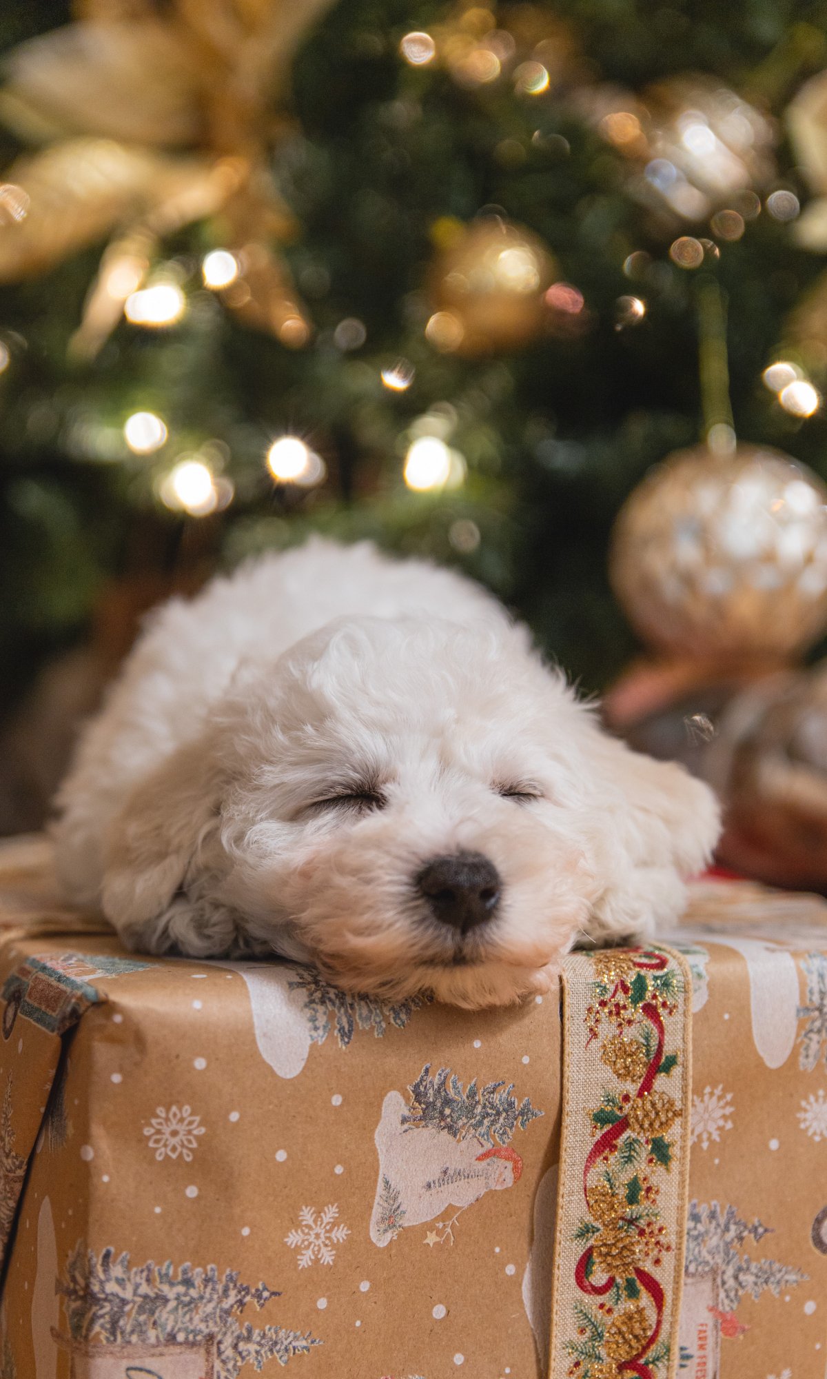 Wallpaper: puppy, white, new year - 1200x2000
