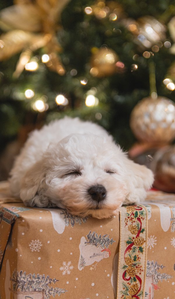 Wallpaper: puppy, white, new year - 600x1024