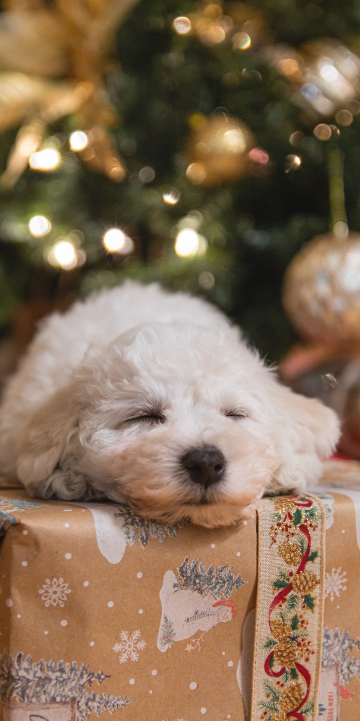 Wallpaper: puppy, white, new year - 720x1440