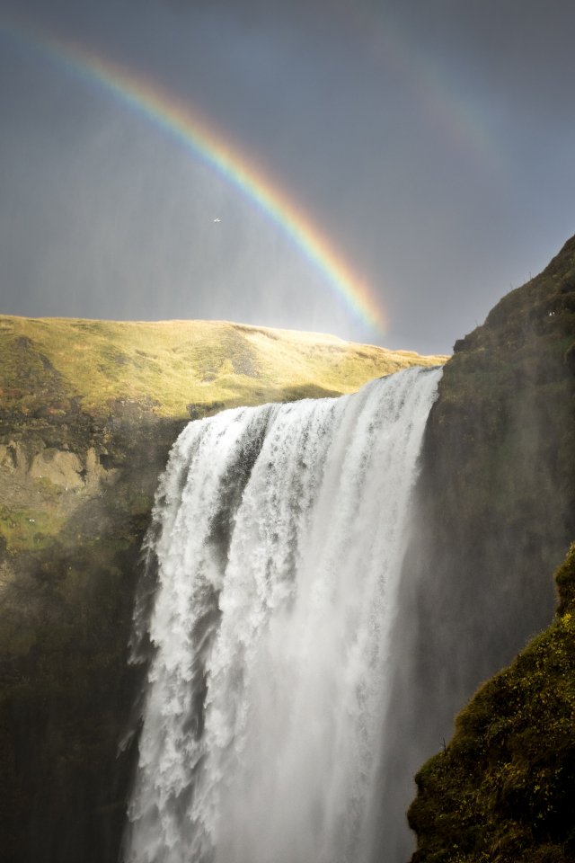 Wallpaper: Skogafoss waterfall, Iceland, rainbow - 640x960