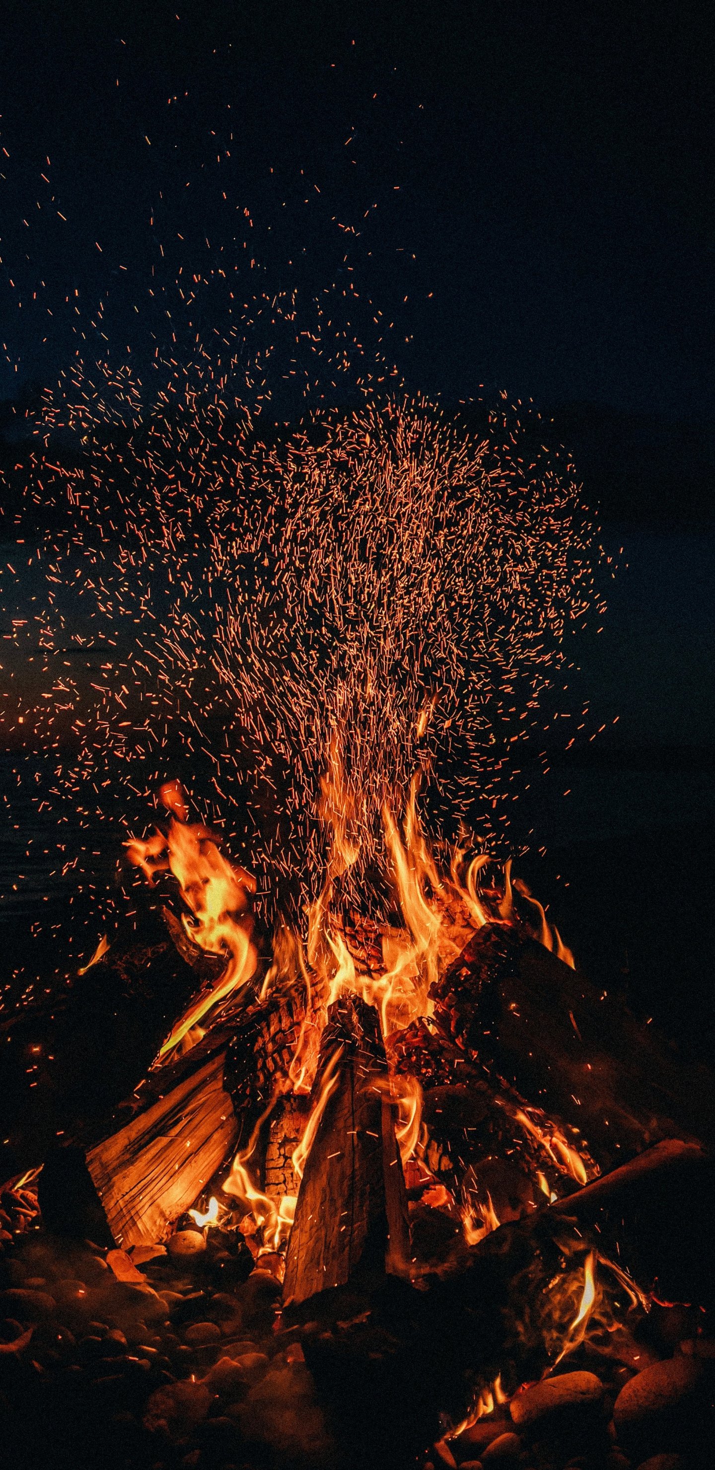 Wallpaper: bonfire, fire, sparks - 1440x2960