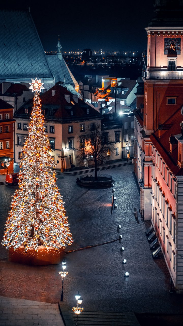 Wallpaper: Christmas tree, night, night city, New Year - 720x1280