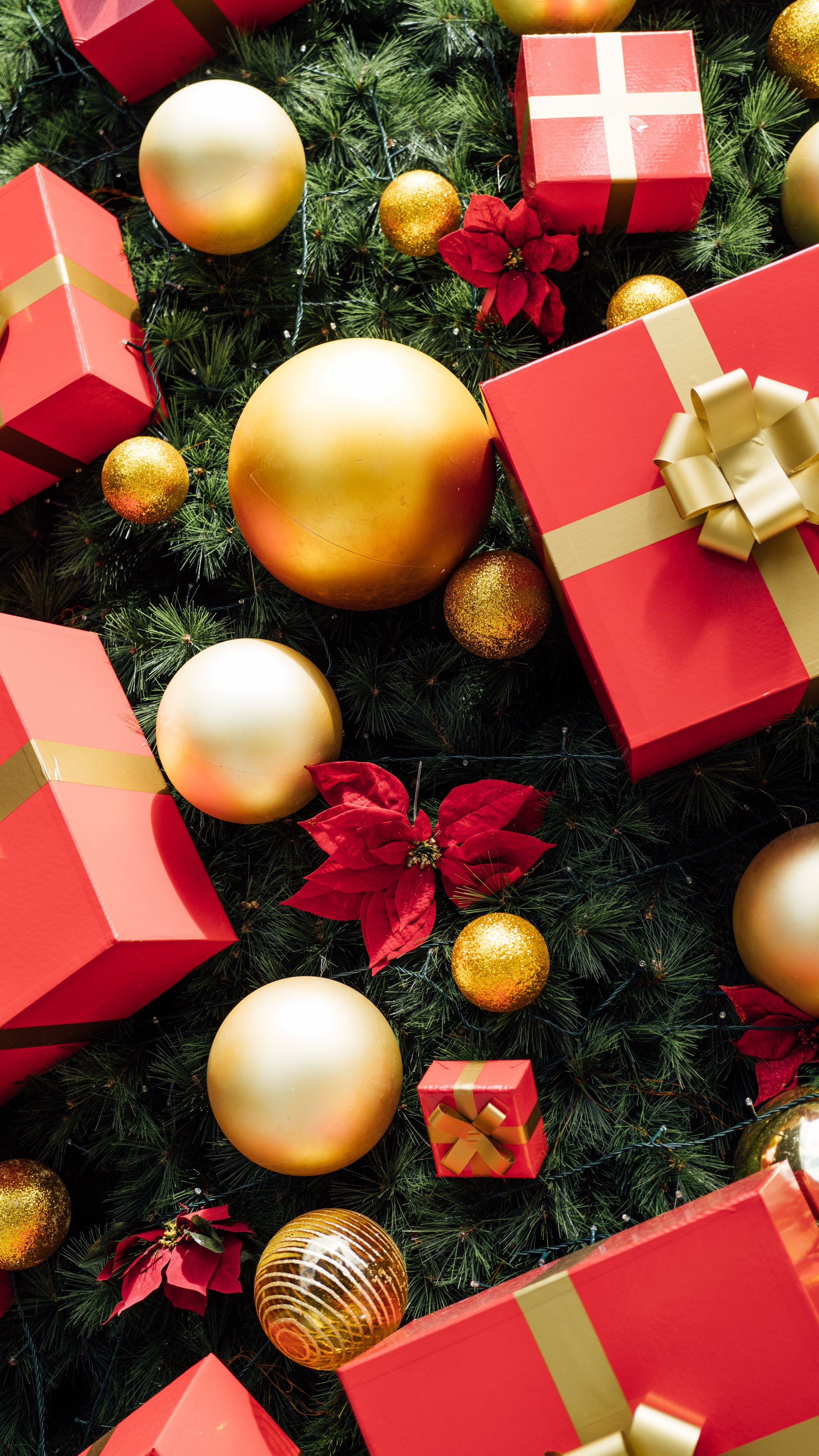 Wallpaper: gifts, holiday, balls, red - 2160x3840