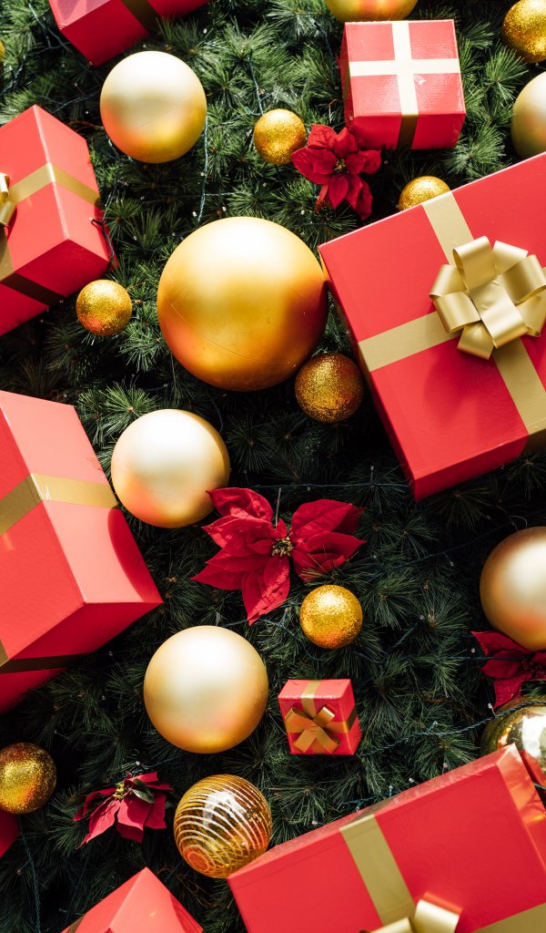 Wallpaper: gifts, holiday, balls, red - 600x1024