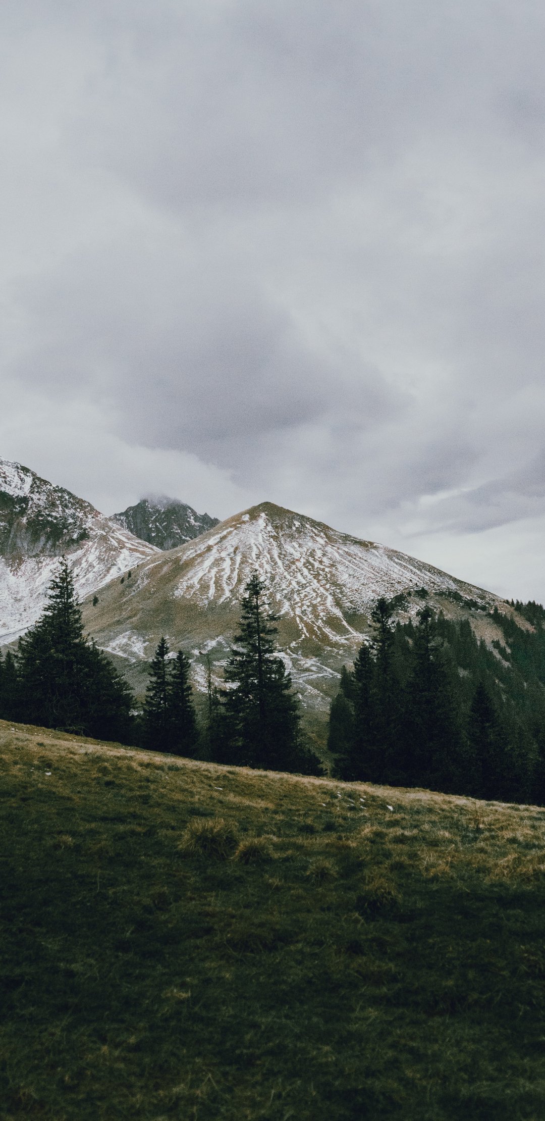 Wallpaper: mountain, peak, forest, snow, trees, calm, pacification - 1080x2220