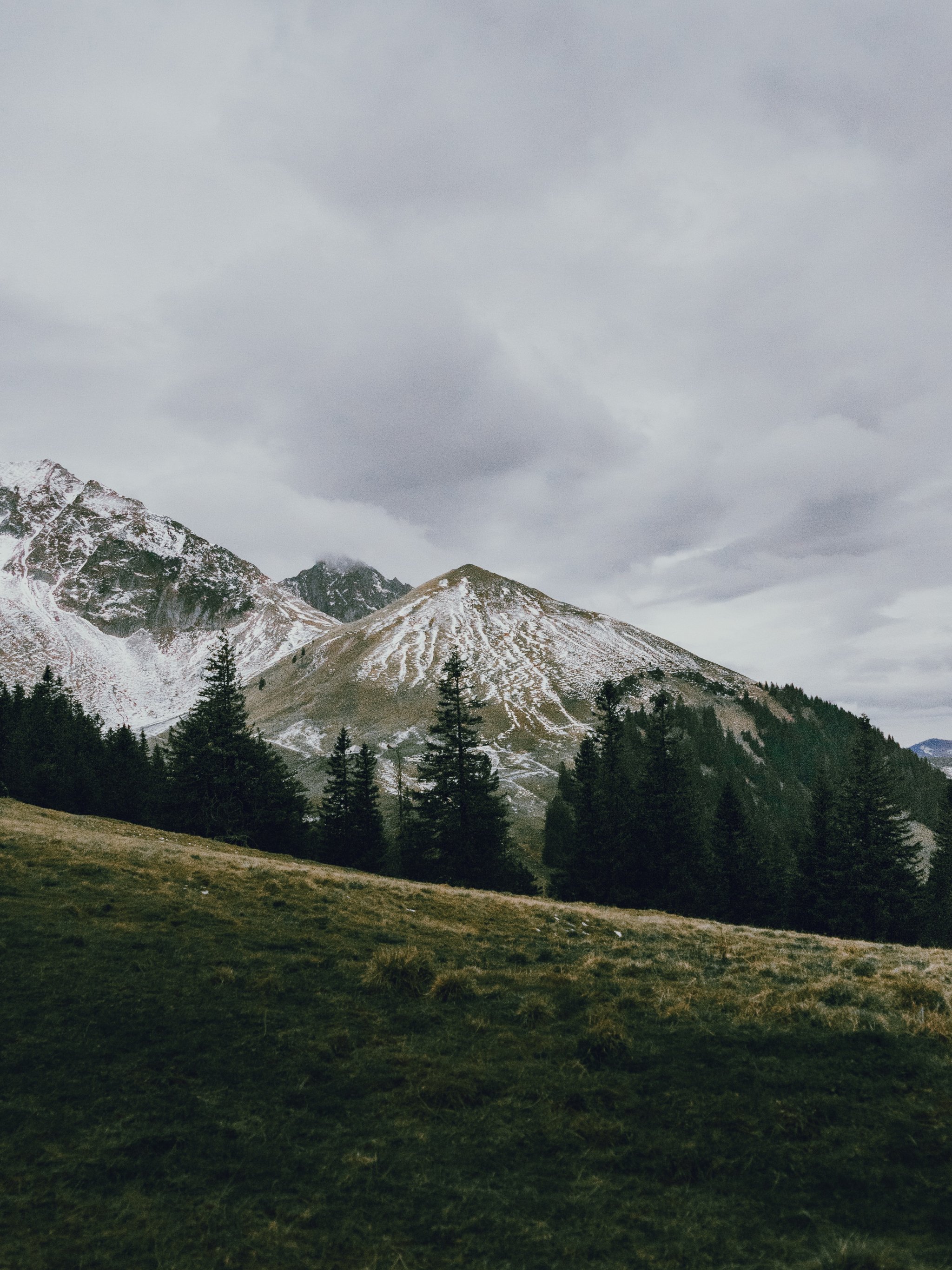 Wallpaper: mountain, peak, forest, snow, trees, calm, pacification - 2048x2732