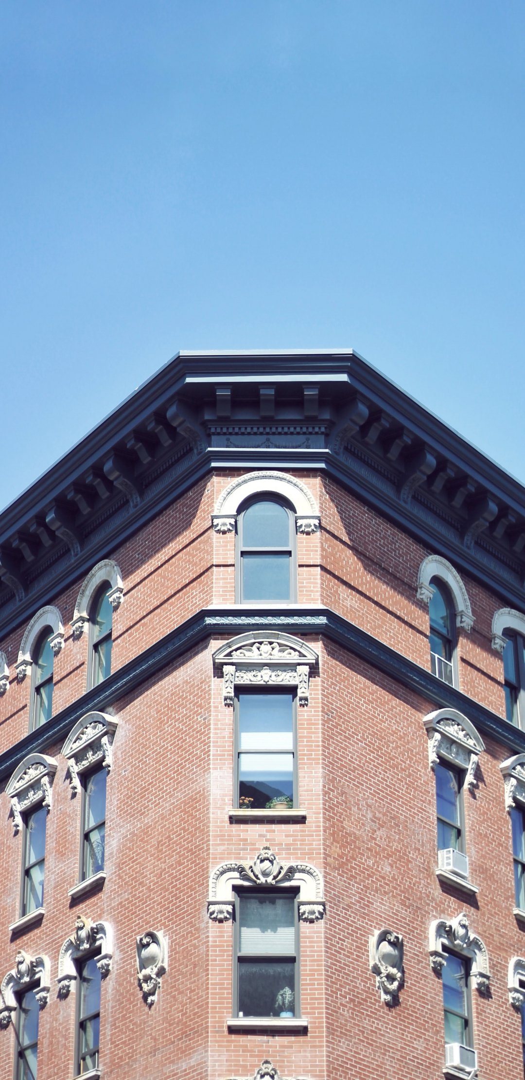 Wallpaper: city, windows, sky, brick building, minimalism - 1080x2220