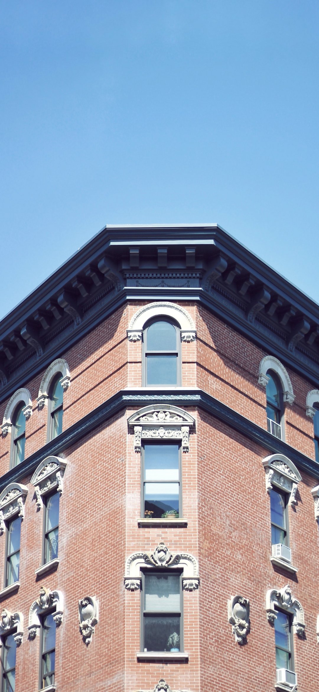 Wallpaper: city, windows, sky, brick building, minimalism - 1080x2340