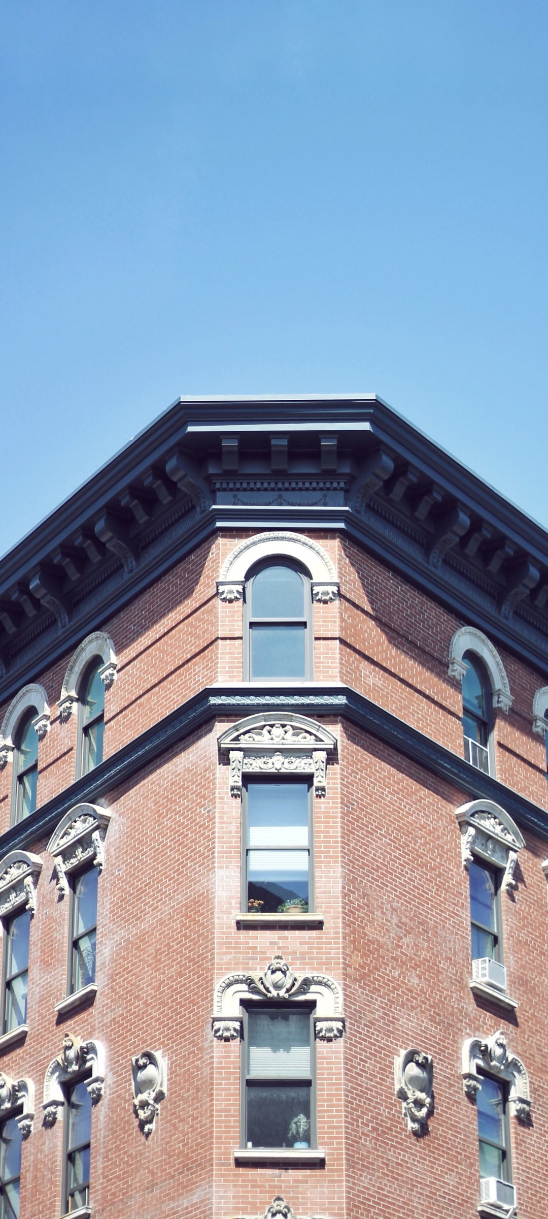 Wallpaper: city, windows, sky, brick building, minimalism - 1080x2400