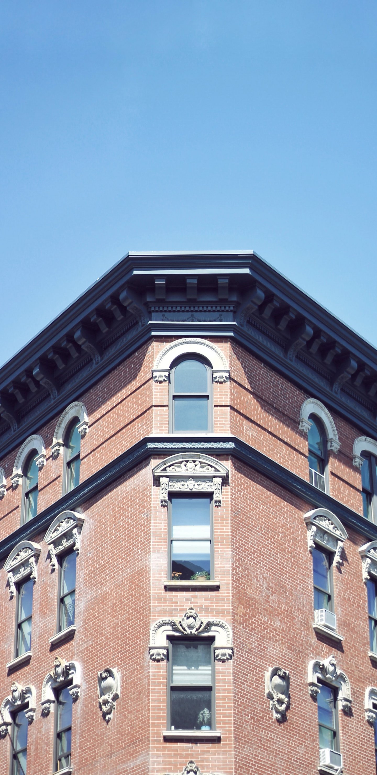 Wallpaper: city, windows, sky, brick building, minimalism - 1440x2960