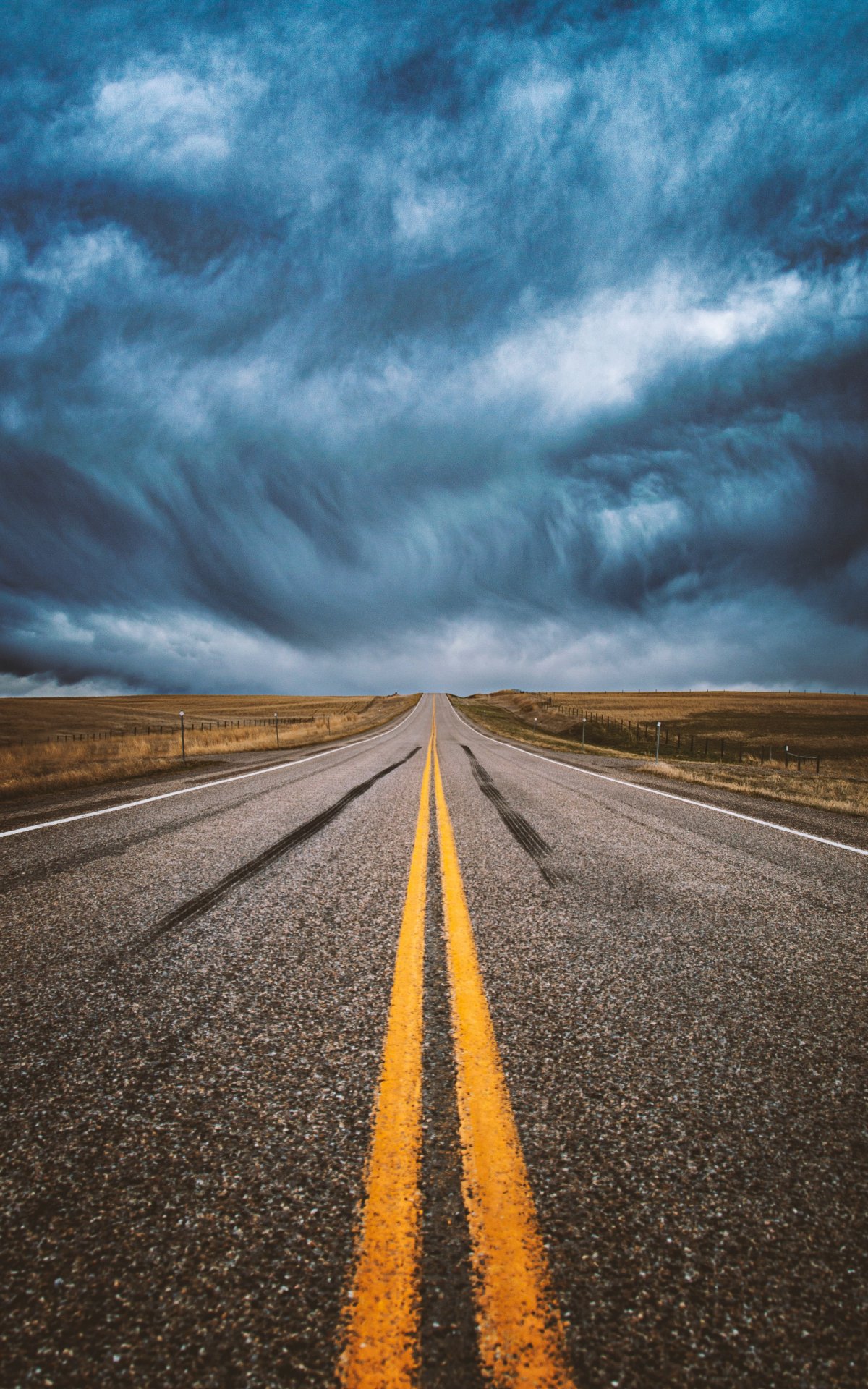Wallpaper: asphalt, road, clouds, sky, into the distance, path - 1200x1920
