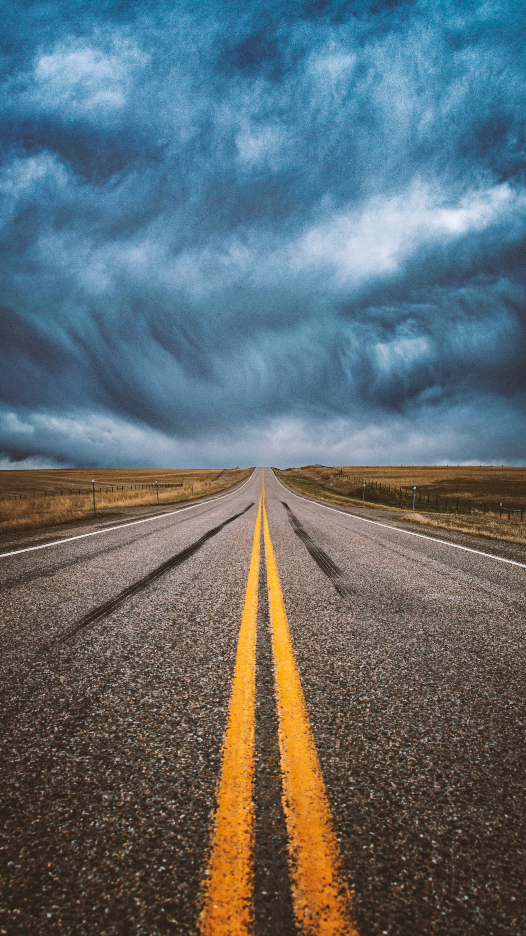 Wallpaper: asphalt, road, clouds, sky, into the distance, path - 2160x3840
