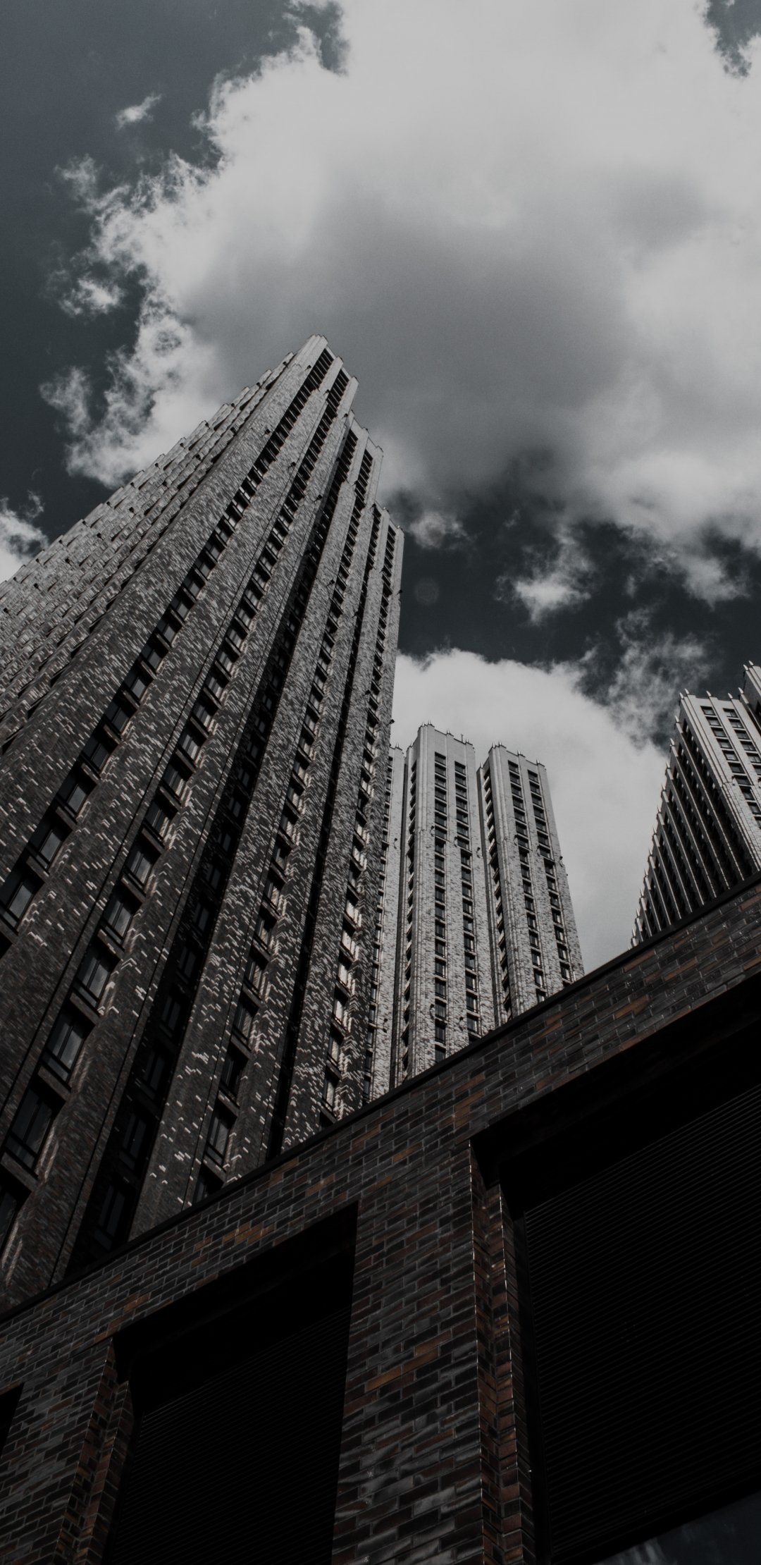 Wallpaper: skyscraper, building, high-rise, brick, clouds, sadness - 1080x2220