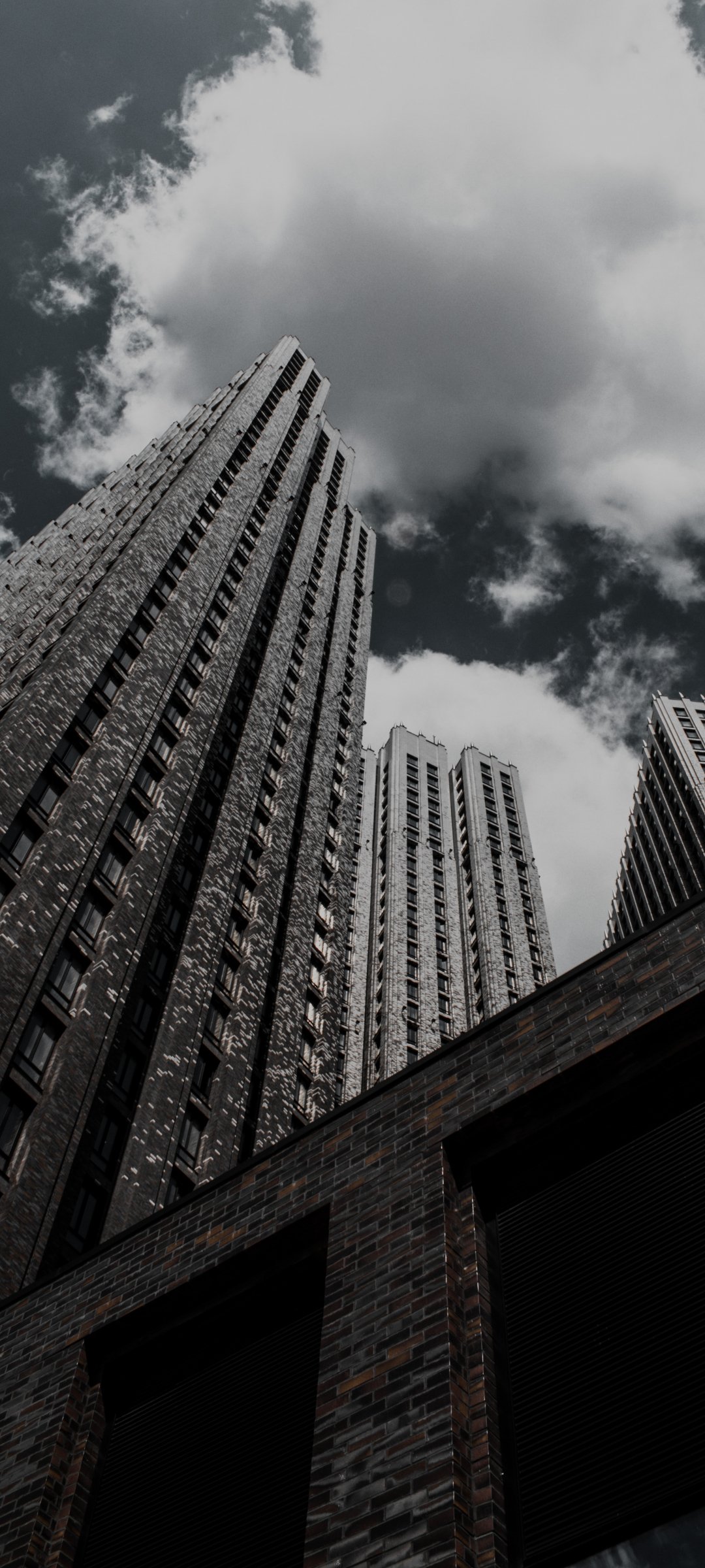 Wallpaper: skyscraper, building, high-rise, brick, clouds, sadness - 1080x2400
