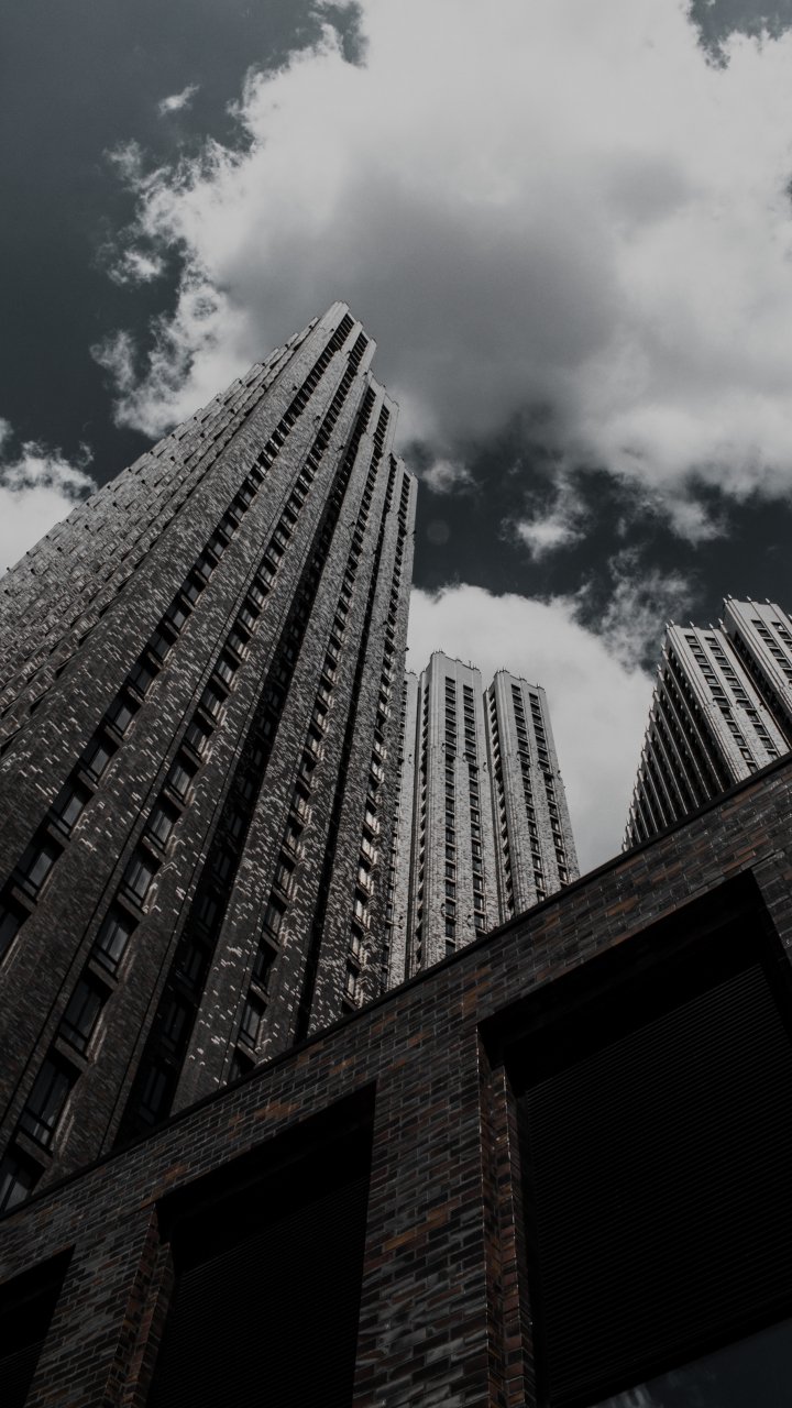 Wallpaper: skyscraper, building, high-rise, brick, clouds, sadness - 720x1280