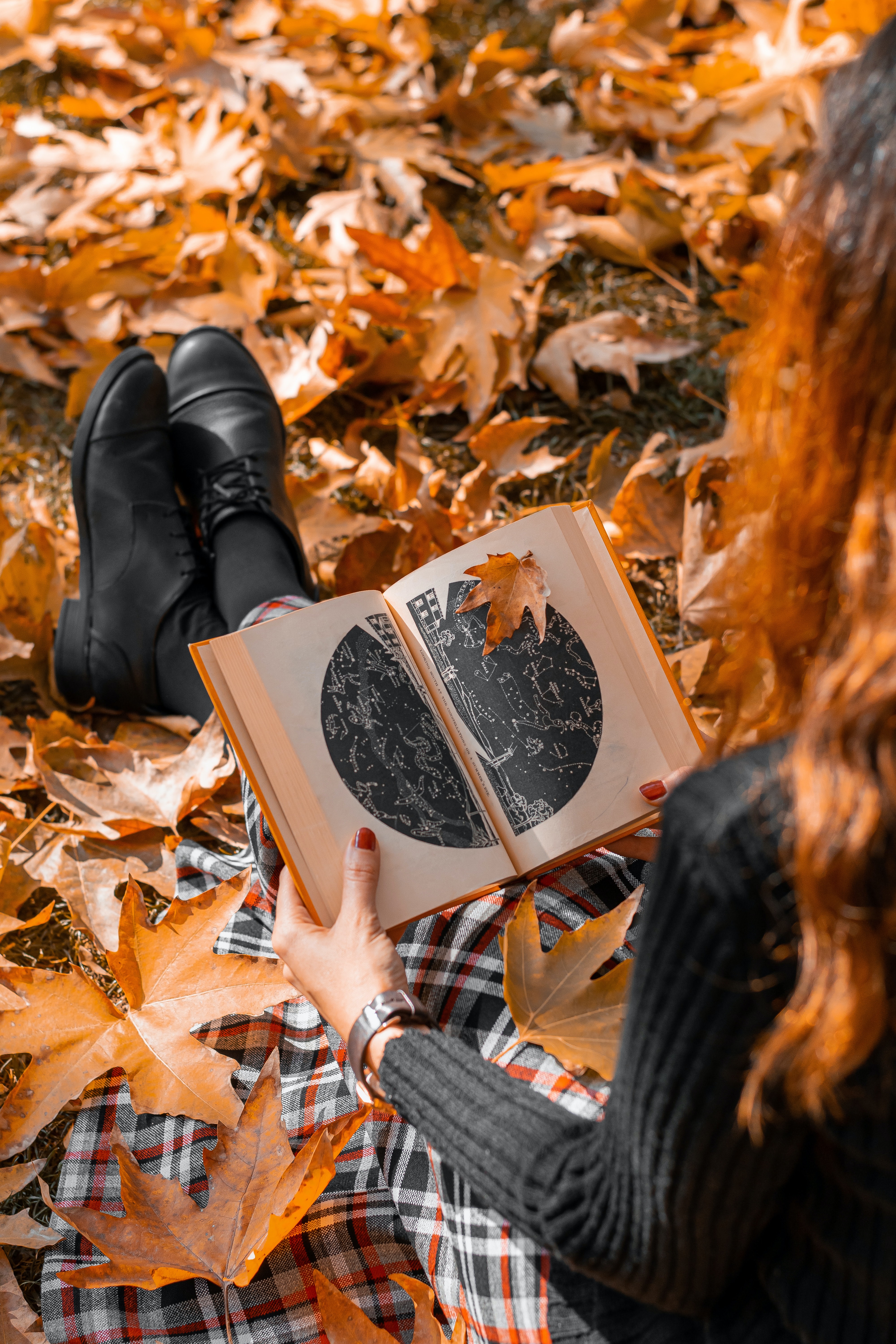 Wallpaper: autumn, girl, maple leaf, mood autumn, book - 4000x6000