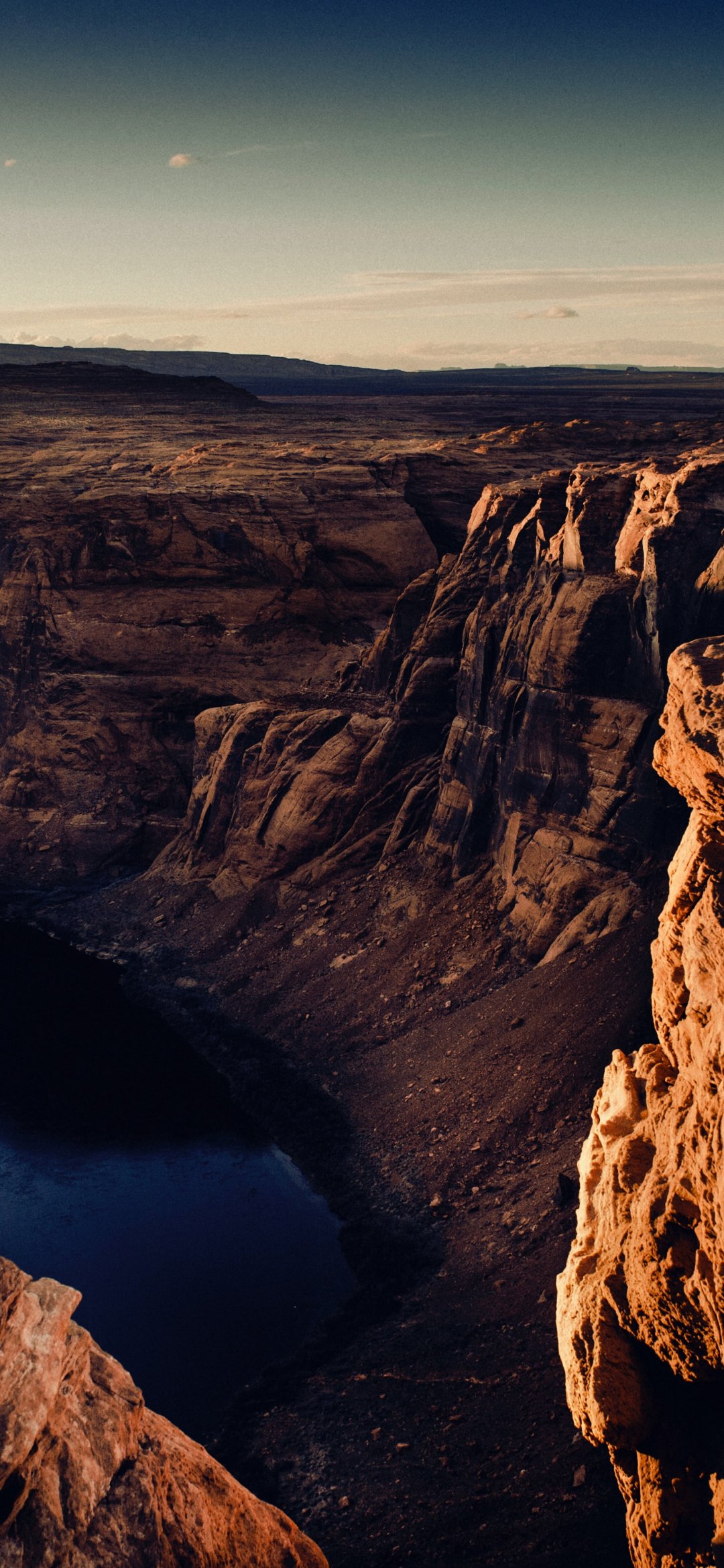 Wallpaper: canyon, lake, rocks, sun, photographer - 1080x2340