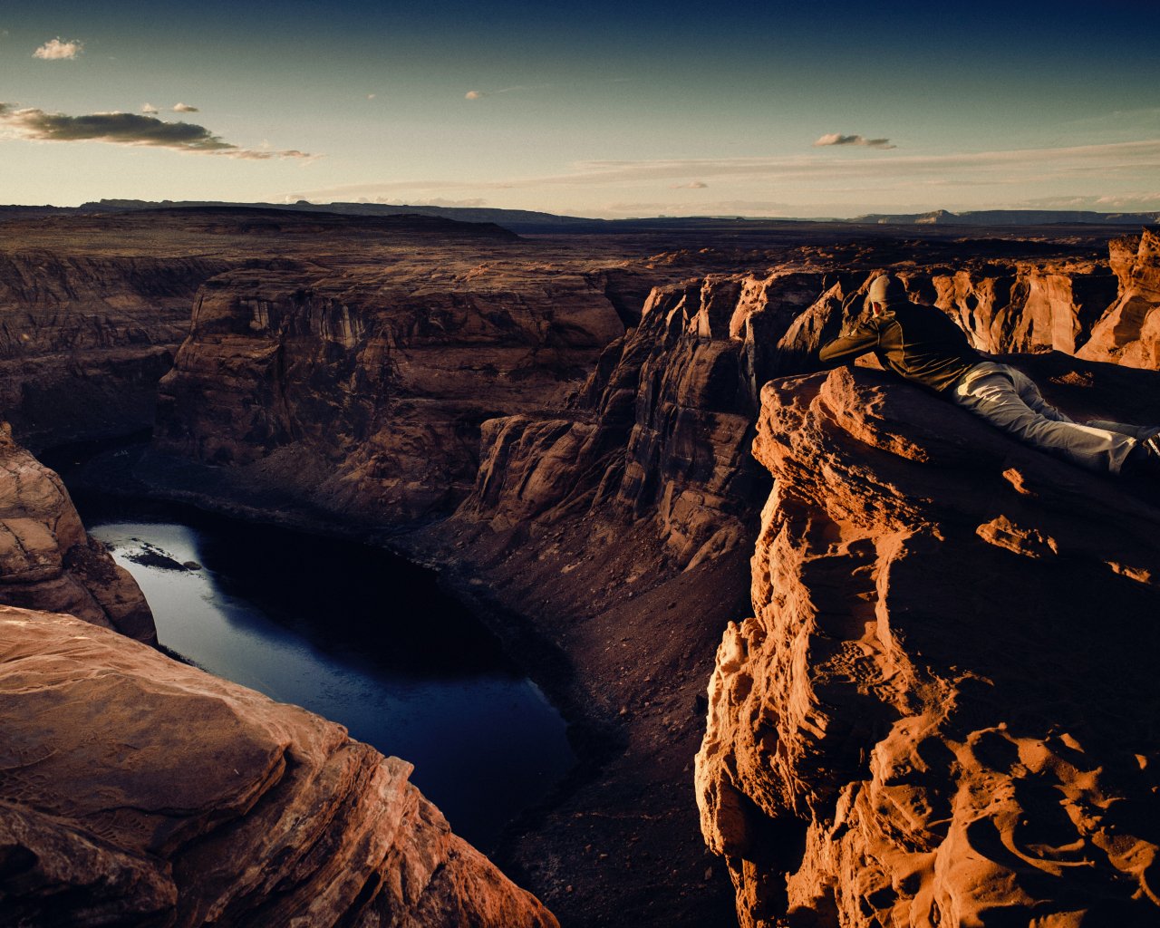 Wallpaper: canyon, lake, rocks, sun, photographer - 1280x1024