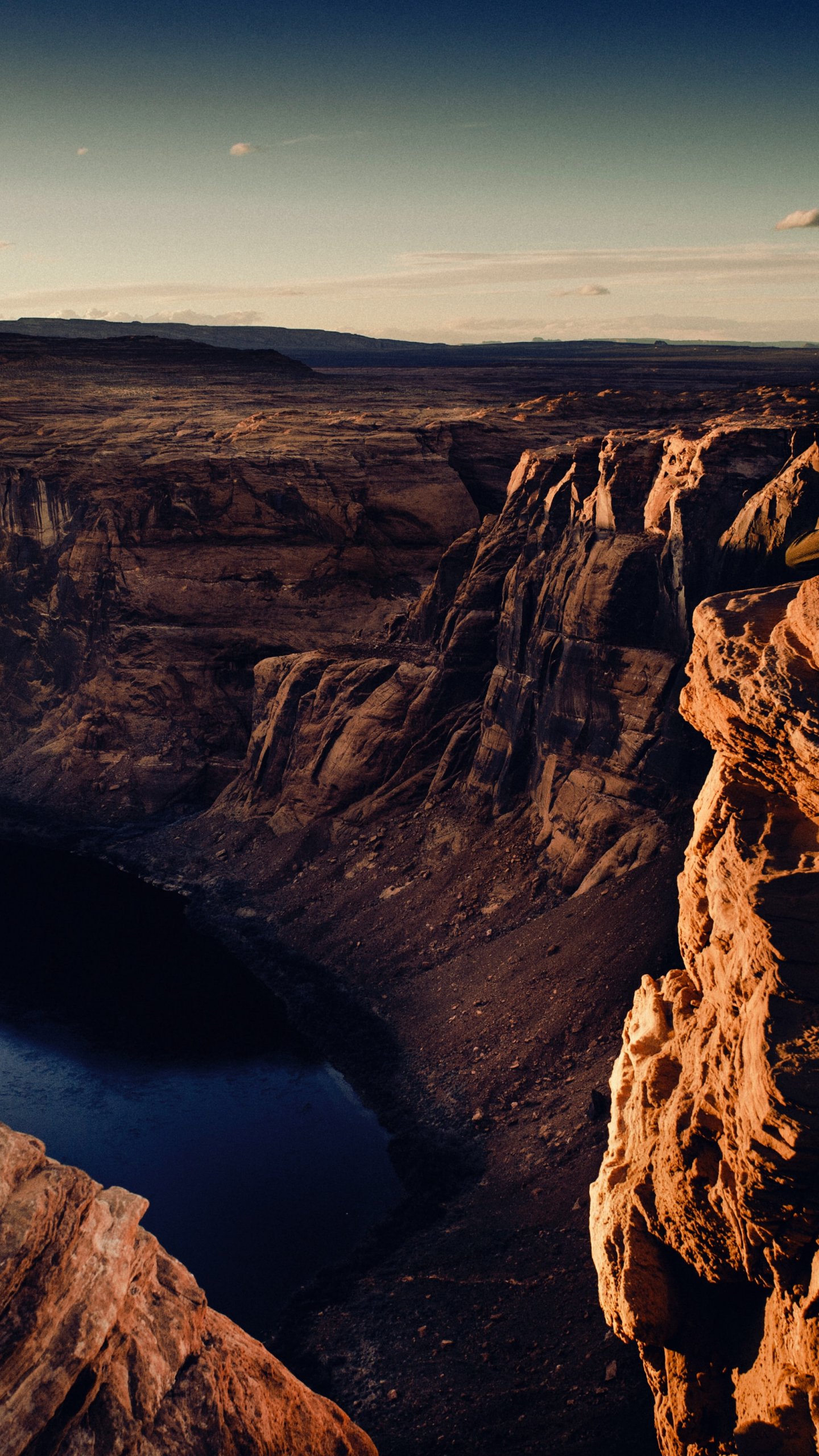 Wallpaper: canyon, lake, rocks, sun, photographer - 1440x2560