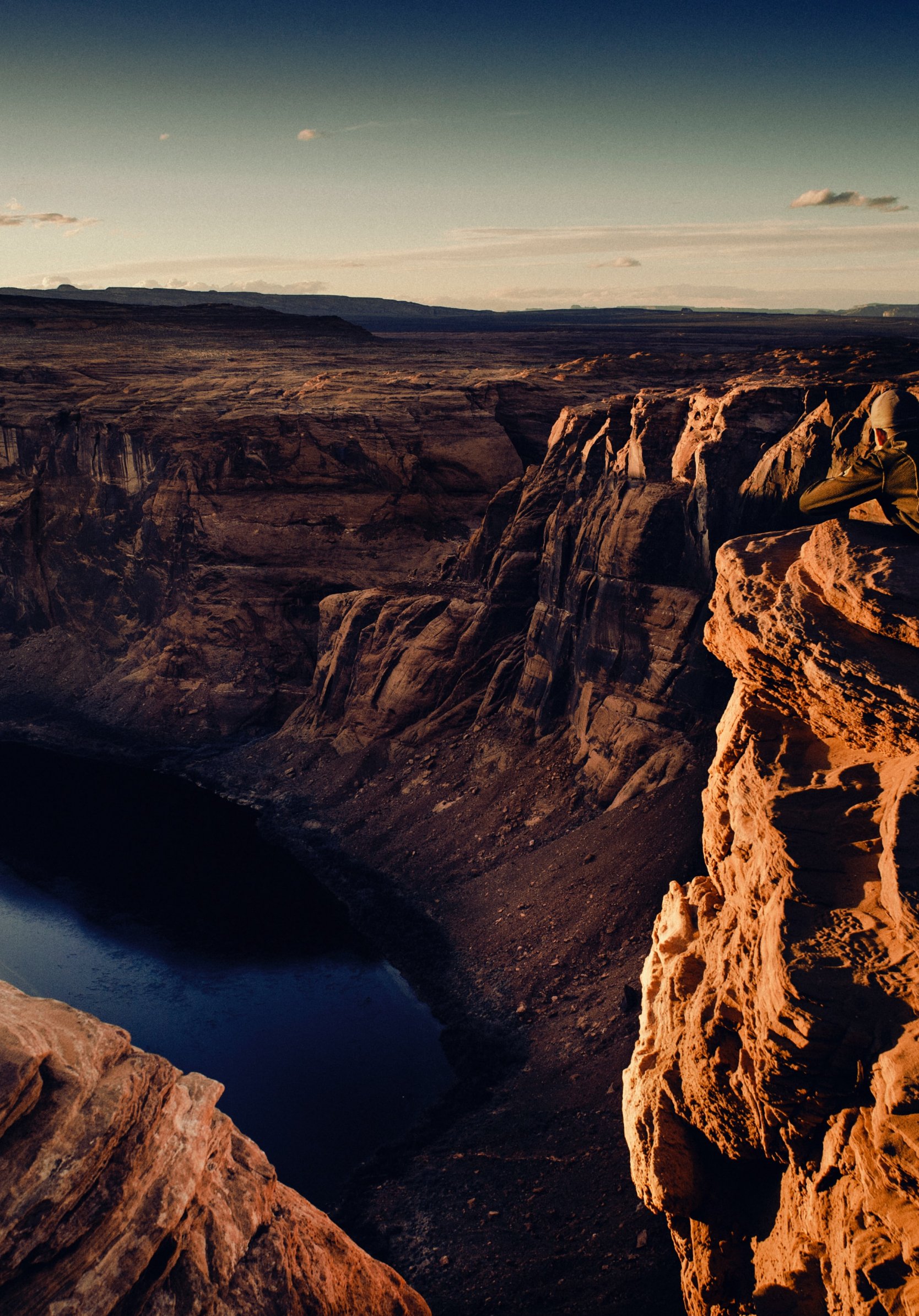 Wallpaper: canyon, lake, rocks, sun, photographer - 1668x2388