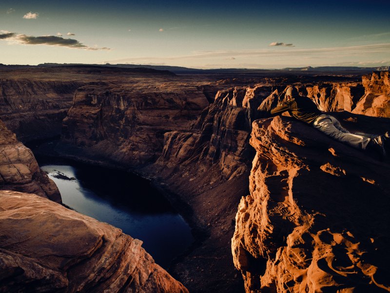 Wallpaper: canyon, lake, rocks, sun, photographer - 800x600