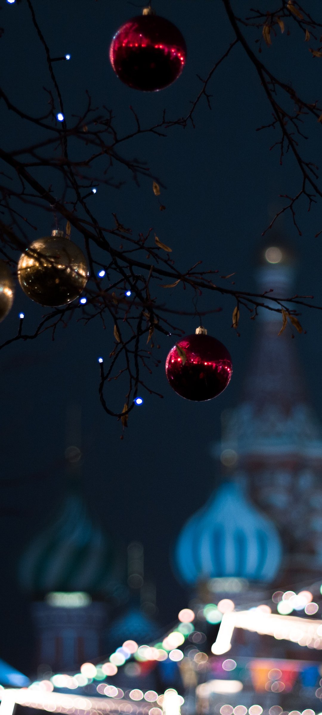Wallpaper: Moscow, decoration, light bulb, night, defocus - 1080x2400