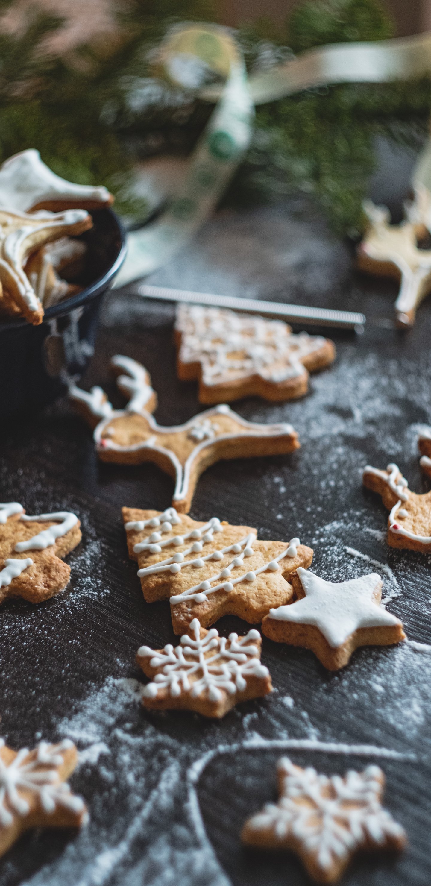Wallpaper: cookie, deer, stars, flour, baked goods, snowflakes, delicious - 1440x2960