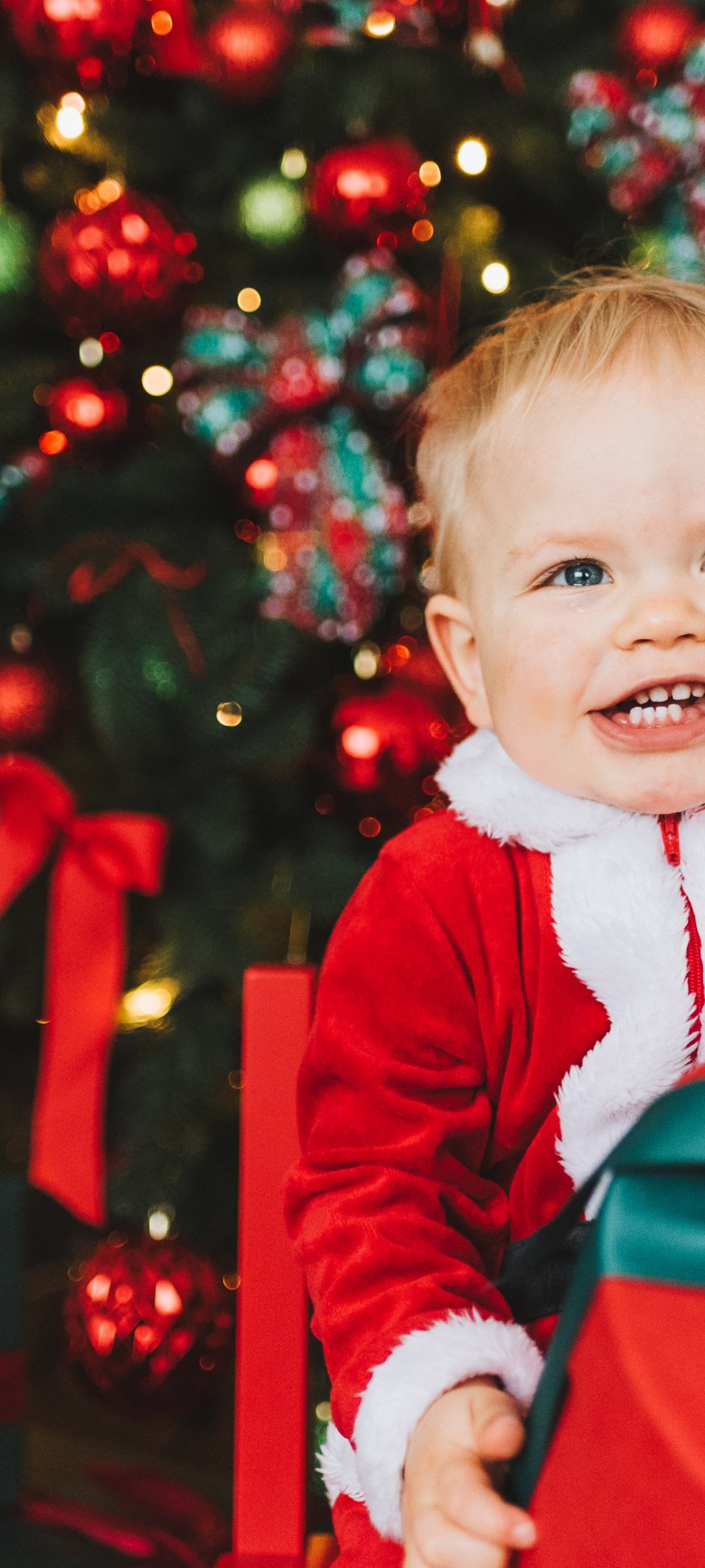 Wallpaper: baby, smile, little santa, new year photo shoot - 1080x2400