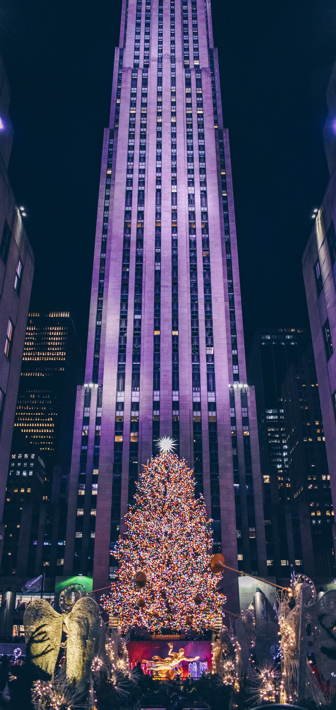 Wallpaper: New Year, days 2021, skyscraper, city tree, area night city - 1080x2280