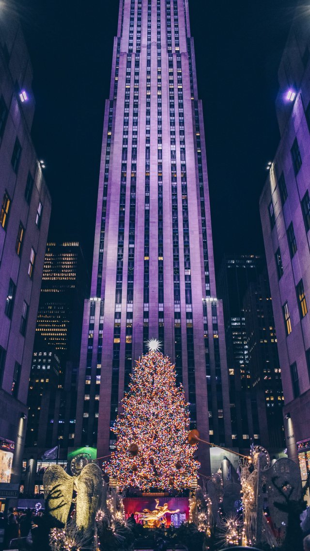 Wallpaper: New Year, days 2021, skyscraper, city tree, area night city - 640x1136