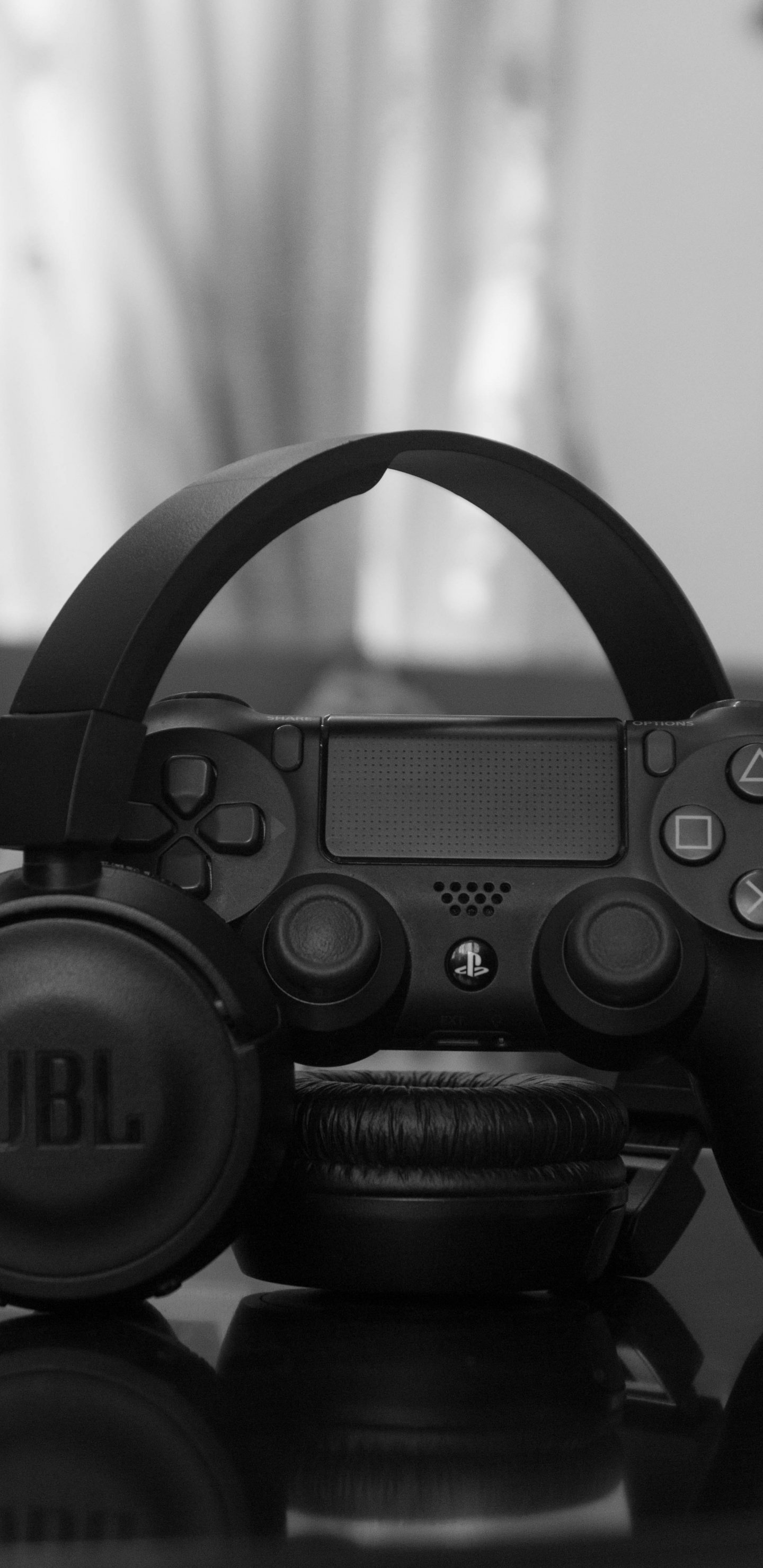 Wallpaper: headphone, joystick, game, black and white photo, music - 1440x2960