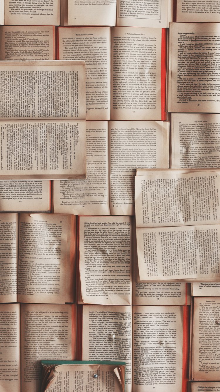 Wallpaper: books, wall, page, text, book wall - 750x1334
