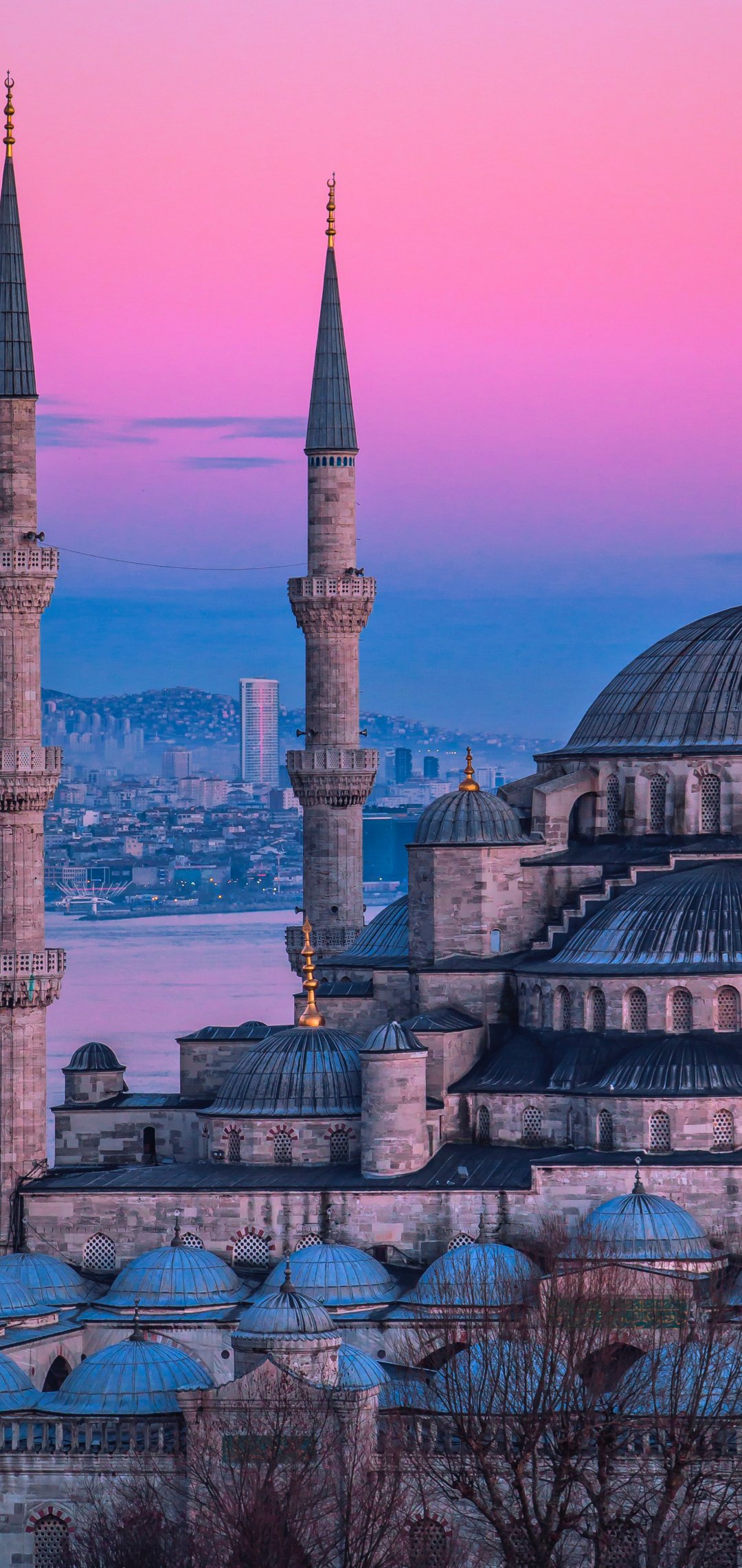 Wallpaper: tower, dome, sunset, trees - 1080x2280