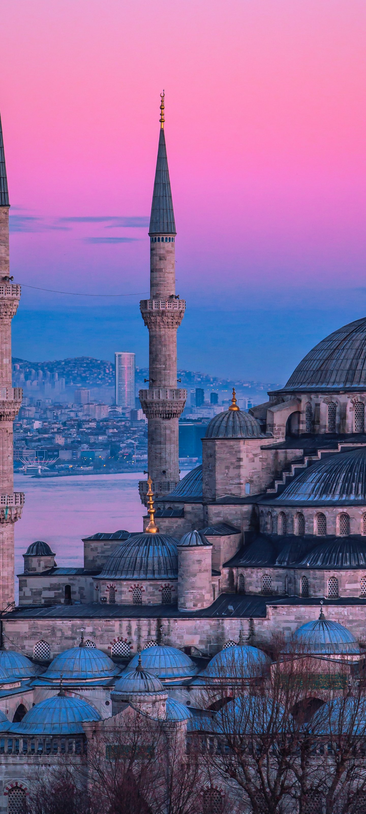 Wallpaper: tower, dome, sunset, trees - 1440x3200